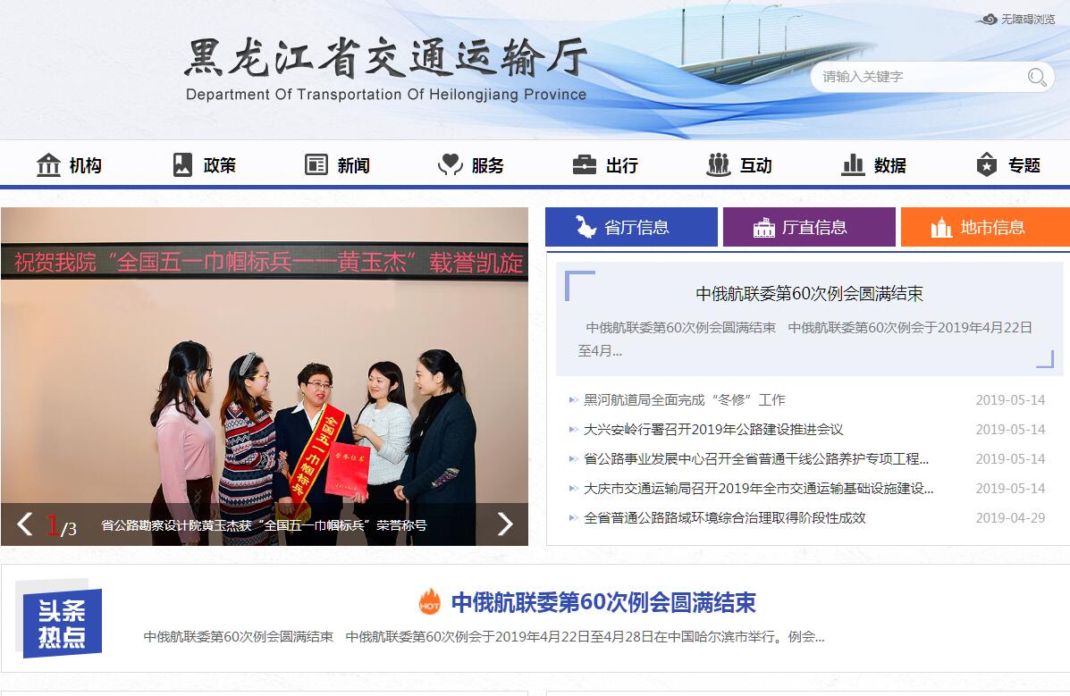 黑龙江省交通运输厅贯彻落实党中央、省委关于交通运输工作的方针政策和决策部署,在履行职责过程中坚持和加强党对交通运输工作的集中统一领导。主要职责是:一、负责推进综合交通运输体系建设,组织编制综合交通运输体系规划,协调指导综合交通运输枢纽规划和有关管理工作。二、贯彻执行国家公路、水路行业发展战略、方针政策和法律法规。组织拟订公路、水路行业地方性法规、省政府规章草案、政策、规划和标准并贯彻实施。参与拟订物流业发展战略和规划,拟订有关政策和标准并监督实施。指导公路、水路行业有关体制改革工作。三、承担道路、水路运输市场监管责任。组织拟订道路、水路运输有关政策、准入制度、技术标准和运营规范并监督实施。指导城乡客运及有关设施规划和管理工作,指导出租车行业管理工作,负责汽车出入境运输、国际和国境河流运输及航道有关管理工作。四、负责提出公路、水路固定资产投资规模和方向、国家和省财政性资金安排建议。按省政府规定权限提出省政府规划内和年度计划规模内交通运输固定资产投资项目审查意见。拟订公路、水路有关规费政策并监督实施。五、承担公路、水路建设市场监管责任。拟订公路、水路工程建设相关政策、制度和技术标准并监督实施。拟订公路、水路工程质量监督管理政策并监督实施。承担公路、水路有关重点工程建设质量、安全生产监督管理工作。负责港口规划和岸线使用管理工作。六、组织实施公路、水路交通重点工程建设。指导公路、水路交通运输基础设施建设、管理和维护。承担有关交通重要设施的管理和维护。组织实施战备公路、水路建设和维护。承担国防动员有关工作。七、负责公路、水路行业的安全生产和应急处置工作。依法组织或参与事故调查处理及水上救助打捞工作。按规定组织协调国家和省级重点物资和紧急客货运输。八、负责全省公路路网运行监测和协调工作。承担交通运输统计工作,监测分析运行情况,发布有关信息。九、指导公路、水路行业环境保护和节能减排工作。负责公路、水路对外合作与外事工作。十、负责道路和水路运输行政管理、公路行政管理、航道行政管理、港口行政管理等工作。指导监督全省交通运输行政许可、综合行政执法工作。十一、贯彻执行国家铁路建设、民航运输、机场建设的方针政策。负责全省铁路和民航项目规定权限内的前期准备、初步设计报批、建设及运营管理等工作。十二、贯彻执行人才队伍建设政策、法律、法规,负责现代交通运输人才队伍建设工作。十三、完成省委、省政府交办的其他任务。指导所属事业单位和联系的社会组织的党建工作。