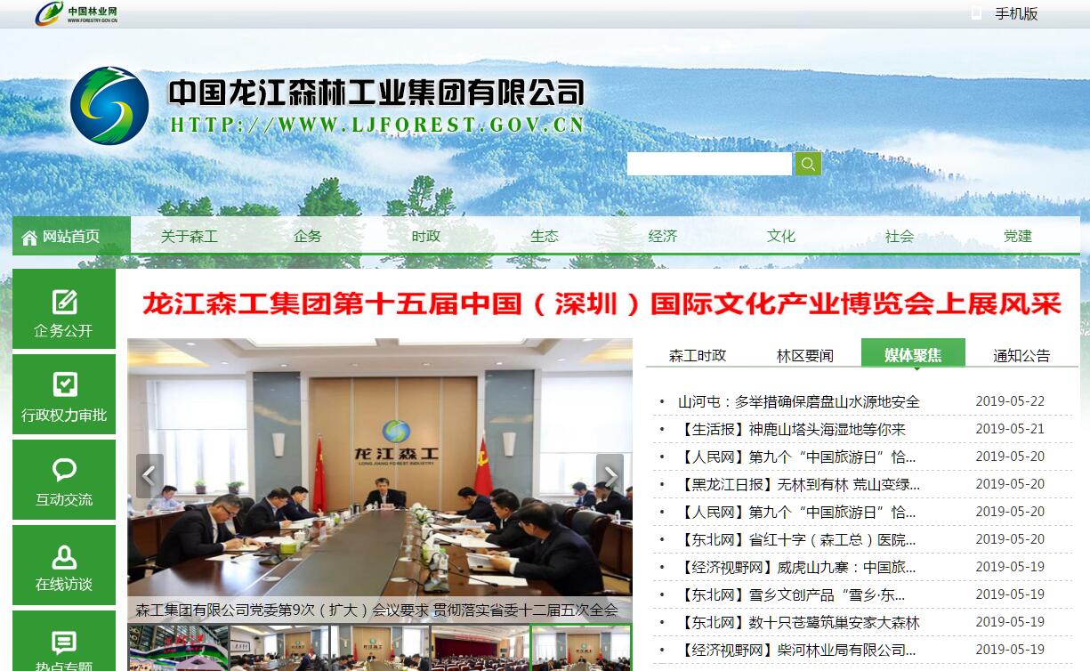 黑龙江森工系统经营总面积1009.8万公顷,占全省国土面积的22%;有林地面积8 5 8万公顷,占全省天然林的44.2%;森林总蓄积8.6亿立方米,占全省的53%;森林覆被率85. 1%,高于全省39.1个百分点。黑龙江森工林区是东北亚陆地生态系统和东北“大粮仓”的天然屏障,生态地位十分重要。分布在小兴安岭、张广才岭、老爷岭、完达山等山系的广袤森林,是东北亚陆地自然生态系统的主体之一, 是东北大粮仓的天然生态屏障,是六大水系(黑龙江、乌苏里江、松花江、嫩江、牡丹江、绥芬河)主要发源地和涵养地,生态地位十分重要。黑龙江省森林工业总局下辖伊春、牡丹江、松花江、合江等4个林管局、40个林业局、627个林场(所)和1 7个林产工业企业、4个林机修造企业以及公检法司、科研院所、文教卫生、森林调查、建筑施工等处级以上企事业单位1 4 0个。林区人口1 6 7万人,职工3 5.9万人,离退休职工2 7万人。40个林业局跨全省10个地市、37个县(市)分布,其中跨省分布的有4个局、跨2个以上县(市)分布的有19个局。黑龙江森工为国家做出了巨大贡献。在生态建设方面,坚持以营林为基础的方针,大力进行人工造林,人工造林保存面积达到293.8万公顷。在经济发展方面,木材产量最高时占全国33.5%,累计为国家生产木材 5.19亿立方米,占全国产量的21%;上缴利税119亿元。这些木材装入60吨标准火车皮,首尾相接,可绕地球三圈多。在社会发展方面,在昔日人迹罕至、基础设施几近于零的原始林区,建起了星罗棋布的小城镇。经过60多年的艰苦创业,形成了比较完备的林业生态体系、比较发达的林业产业体系、比较完善的林区社会体系。黑龙江森工林区管理体制经历了四次大的变动:一是1962年11月,国家决定在哈尔滨设立东北林业总局,负责东北、内蒙古国有林区林业全面工作,整个森工国有林区实际是由国家直接管理。二是1967年9月,国家将林业总局下放给省政府,实行国家和省双重领导,省里负责人事、财务管理;国家负责林业生产计划、基建投资、产品调拨、物资供应、森林资源管理等,林业总局自此成为“下放直供”单位。三是1983年4月,我省进行省级党政机关机构改革,将省林业总局更名为省森林工业总局,把其负责地方林业的营林局独立出来,组建省林业厅。森工总局行使重点国有林区的行政管理和森工行业管理职能。四是1991年10月,根据国务院国发[1991]71号文件要求,东北、内蒙古四大森工同时被列入国家第一批57户试点企业集团,成立中国龙江森林工业集团和中国龙江森林工业(集团)总公司。1995年11月,经七届109次省委常委会决定,中国龙江森工集团和中国龙江森工(集团)总公司挂牌,保留省森工总局,实行一个机构两块牌子,统管全省森工系统工作。1998年省委8届2次常委会议,将省森工总局以 “省级授权、部门派出、系统管理、内部分开”的形式予以职能定位,授权省森工总局行使所辖重点国有林区的行政管理职能,总局资源局行使所辖林区的森林资源管理职能,印发了省森林工业总局和省森林资源管理局“三定”方案。据此,省森工总局现有三项职能。一是作为森工重点国有林区的省级林业主管部门,负责本系统的林业工作,并履行国家和省赋予的有关职责。二是森工总局自行管理所辖林区的行政工作,履行地市级政府职能,目前依照地方性法规的单项授权,具有八大类149项行政执法职能。三是森工多年来已逐渐形成了营林产业、木材生产、林产工业、种植养殖业、森林食品、北药产业、森林生态旅游和清洁能源业八大产业,具有林业产业管理和企业运营功能。近年来,黑龙江森工抓住国家实施天保工程、东北老工业基地振兴和我省实施“五大规划”等战略机遇,确立了“四八四三”长远发展战略,加快了转型发展步伐,开创了森工发展新局面。(一)森林资源保护和培育效果显著。认真落实停伐决定,强化了森林资源培育,加强了森林资源保护,开展了生态文明示范区建设。天保工程实施以来,黑龙江森工累计少采伐木材5 4 9 8万立方米,少消耗森林资源9 1 6 3万立方米。森林面积由748.6万公顷增加到858.1万公顷,增加了15%;森林覆被率由74. 5%提高到85. 1%,提高了10.6个百分点;活立木蓄积由6.39亿立方米增加到8.9亿立方米;有林地公顷蓄积由78立方米增加到101立方米,实现了森林面积、覆盖率、蓄积和公顷蓄积“四增长”。自然保护区数量由2处增加到2 4处,其中国家级1 0处,保护区总面积由67.9万公顷增加到了122.2万公顷,过去罕见的东北虎、东北豹等珍贵野生动物再现森工林区。(二)产业转型升级步伐加快。以林区资源为依托,加快向生态产业、非木产业和境外开发三个方向转型,大力发展营林、木材生产、林产工业、种植养殖、森林食品、北药、森林生态旅游、清洁能源“八大产业”,加快建设粮豆、经济作物、奋牧业、特色养殖、食用菌、坚果、浆果、北药、山野菜、矿产1 0大基地。按照省委、省政府建设千亿元销售额大型产业集团的要求做大做强黑森企业集团,已经组建完成的黑森绿色食品集团、黑森旅游集团和森工金融公司运营状况良好。“黑森”被认定为黑龙江省著名商标,大海林中国雪乡、亚布力滑雪旅游度假区、山河屯凤凰山、柴河小九寨、伊春林都等成为国内知名旅游景区。全面深化对俄经贸合作,加快境外森林资源开发步伐。在俄投资建设的龙跃木材加工园区已经