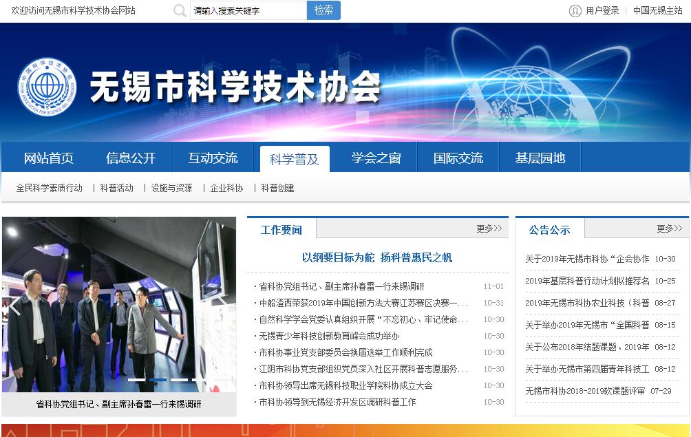 无锡市科学技术协会(简称无锡市科协)是中共无锡市委领导下的人民团体,无锡科技工作者的群众组织;是党和政府联系科技工作者的桥梁和纽带,发展科学技术事业的重要社会力量;是无锡市政协的组成单位。无锡市科协的宗旨是团结和组织全市广大科技工作者,高举邓小平理论伟大旗帜,实践“三个代表”重要思想,深入贯彻科学发展观,围绕党和政府的中心工作,积极推动科教兴市和可持续发展战略的实施,建设创新型城市;促进科学技术的繁荣和发展,促进科学技术的普及和推广,促进科学技术人才的成长和提高,促进科学技术与经济的结合;代表和维护科技工作者的合法权益,为经济社会发展服务,为提高全民科学素质服务,为科学技术工作者服务。无锡市科协的主要职责是:1、按照国家、省科普工作的方针、规划,负责拟订科协系统科普工作具体计划,并组织实施。动员社会各方面力量,开展科普活动和青少年科技教育活动,推广先进技术;指导科普馆科普设施、场所的规划、建设和管理及科普工作队伍的建设工作;2、开展学术交流,活跃学术思想,繁荣学术园地,促进学科发展、知识创新;3、全心全意为科技工作者服务,反映科技工作者的意见和要求,维护科技工作者的合法权益;4、引导科技工作者在管理国家和社会事务中发挥作用,组织科技工作者参与政府科学技术政策、法规制定和政治协商、科学决策、民主监督工作,促进决策科学化、民主化;5、表彰、宣传优秀科技工作者,推荐人才。开展科技工作者的继续教育和培训工作;6、开展科学论证、咨询服务,提出政策建议,促进科学技术成果的转化,接受委托承担项目评估、成果鉴定等任务;7、开展民间国际科技交流与合作,发展与香港、澳门特别行政区和台湾地区科技及国外科学技术团体、科技工作者的民间交往和联系;8、监督管理主管的有关学会、科技类社会团体,指导市(县)、区科协的业务工作;9、组织、指导有关捍卫科学尊严和反对愚昧迷信、伪科学、反科学的活动;10、承办市委、市政府交办的其他事项。