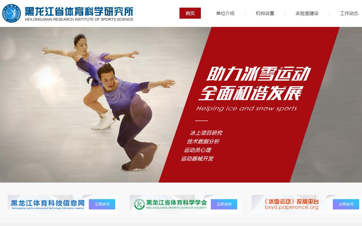 黑龙江省体育科学研究所始建于1972年,是全国最早成立的体育科研所之一,也是目前全国唯一以冬季运动项目为重点研究对象的公益性研究机构。1995年省科技厅批准,建立了黑龙江省冬季运动项目重点实验室;2008年2月成为首批国家体育总局重点实验室(冬季运动训练监控重点实验室);2017年与高校院所合作,成立了《冰雪智慧体育工程联合实验室》。科研所是黑龙江省和国家体育总局冬季运动训练监控科技支撑和先导保障核心单位,是全国冬季运动专业唯一的国家级科技期刊《冰雪运动》的编辑出版单位。主要职能及研究方向:(一)竞技体育方面,以冬季运动项目为重点,开展科学选材、科学化训练、提高运动员运动机能和运动技术水平方法手段的研究,强化高新技术在运动训练中的应用,为国家和省两级运动队开展科技服务和科研攻关工作。在科技服务工作中,通过以严力、王钢为学术带头人的两个科研保障团队,运用生理生化监控、生物力学研究、运动参数分析等多学科手段,结合专项比赛的制胜规律与训练特点,全方位保障重点项目运动员,提高运动训练科学化水平。在科研攻关工中,一是通过智能运动场馆与器材装备的研发,为竞技体育提供科技助力;二是承担科技部、国家和省级各项科研课题,以破解运动一线瓶颈性问题为抓手,不断提升科研理论和业务能力。(二)群众体育方面,组织开展公共体育服务体系与体育人文社会科学的研究工作,包括群众科学健身方法的研究与学术交流、科学普及活动及我省社会体育指导员的培训工作。主要是通过《科学健身学术专家库》,开展《全民健身科技志愿服务神州行活动》《科学健身校园行》等全民健身科普活动,以电视、广播、网络和专题讲座、论坛等形式,辐射全省范围开展科学健身理论宣传,实现科学指导与全民健康有机融合。(三)体育科技信息方面,负责黑龙江体育科技信息网站的信息收集、更新和管理建设工作。一是是树立大健康、大体育、大冰雪、大产业的概念,以提升我国冬季竞技体育水平、普及冰雪运动、促进冰雪经济发展、提高人民健康为首要任务,做好《冰雪运动》期刊的编辑工作;二是充分发挥《黑龙江体育科技信息网》的媒体力量,构建和打造全省竞技体育、全民健身和国民体质监测信息交流的平台(四)反兴奋剂工作方面,负责我省反兴奋剂宣传教育,开展反兴奋剂教育监督检查和效果评估,组织实施委托兴奋剂检查,指导监督对运动队合理使用营养品、药品、防控食品、营养品和药品的兴奋剂风险,协调做好我省反兴奋剂综合治理和专项治理等工作。
