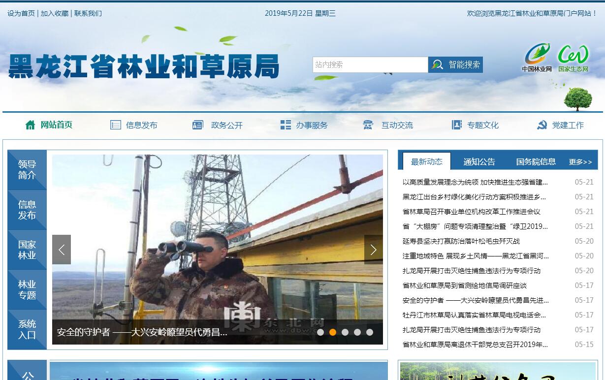 黑龙江省林业和草原局主要职责:(一)负责全省林业及其生态建设的监督管理。贯彻实施国家林业及其生态建设的方针政策、法律法规,拟订全省林业及其生态建设的政策、规划和法规并监督实施。组织开展森林资源、陆生野生动植物资源、湿地和荒漠的调查、动态监测和评估,并统一发布相关信息。承担林业生态文明建设的有关工作。(二)组织、协调、指导和监督全省造林绿化工作。制定全省造林绿化的指导性计划并监督执行。指导、监督植树造林、封山育林、以植树种草等生物措施防治水土流失和退耕还林工作。拟订全省林业应对气候变化的政策措施并监督实施。指导、监督全民义务植树。承担省政府绿化委员会的具体工作。(三)承担全省森林资源保护发展监督管理的责任。组织编制年度森林采伐限额、林木采伐计划,经批准后监督执行。监督检查全省林木凭证采伐、运输和木材经营加工,组织、指导林地、林权管理。依法承担由国务院和省政府批准的林地征用、占用的初审和设立木材检查站的审批工作。指导、协调解决林权争议调处,查处林业行政案件。编制、审定全省各县、林场及有林单位森林经营方案。审批国有林场分类经营方案。指导、监督全省更新造林工作。审批森林采伐更新调查设计并检查验收。指导公益林、商品林培育、管护工作。核发整车(船)运输证明。负责全省进口木材的运输管理。指导林业贮木场工作。指导、协调全省各级木材市场建设和木材销售工作。(四)组织、指导全省陆生野生动植物资源的保护和合理开发利用。依法组织、指导陆生野生动植物的救护繁育、栖息地恢复发展、疫源疫病监测,组织全省野生动植物调查、监测,监督管理全省陆生野生动植物猎捕或采集、驯养繁殖或培植、经营利用,监督管理全省野生动植物进出口。承担全省濒危物种进出口和国家保护的野生动物、珍稀树种、珍稀野生植物及其产品出口的审核工作。负责全省林业系统自然保护区的监督管理。依法指导全省森林、湿地、荒漠化和陆生野生动植物类型自然保护区的建设和管理,监督管理林业生物种质资源、转基因生物安全、植物新品种保护工作。按分工负责生物多样性保护的有关工作。组织、协调、指导和监督全省湿地保护工作。组织实施建立湿地保护小区、湿地公园等保护管理工作,监督湿地的合理利用。负责征用占用湿地资源的审批工作。(五)组织、协调、指导和监督全省荒漠化防治工作。组织拟订全省防沙治沙、荒漠化防治及沙化土地封禁保护区建设规划,监督沙化土地的合理利用,组织、指导建设项目对土地沙化影响的审核。负责土地沙化程度和发展趋势监测,组织、指导沙尘暴灾害预测预报和应急处置。负责三北防护林体系建设规划并监督实施。(六)监督检查全省各产业对森林、湿地、荒漠和陆生野生动植物资源的开发利用。拟订全省林业资源优化配置政策,按规定拟订林业产业省级标准并监督实施。组织指导林产品质量监督。指导山区综合开发。管理省级森林公园的设立、变更等工作。(七)承担组织、指导全省林业改革和维护森林经营者合法权益的责任。拟订全省林权制度改革意见并指导监督实施。指导全省森林、林木和林地承包经营、流转及林权管理工作,监督农村林权纠纷调处和林地承包合同纠纷仲裁。组织拟订非国有林业发展规划、政策措施并监督执行。指导全省国有林场(苗圃)、森林公园和基层林业工作机构的建设和管理。(八)承担组织、协调、指导、监督全省森林防火扑火、草原扑火工作。组织、协调、指导、指挥武装森林警察部队的防火扑火工作。负责森林防火检查站的设立审批。承担省政府森林草原防火指挥部的日常工作。承担林业行政执法监管的责任。负责全省森林公安队伍、装备建设和综合管理。指导全省森林资源保卫工作。组织、指导全省破坏森林资源、野生动植物资源、湿地资源等违法犯罪案件的查处。(九)监督管理省级全省林业基金和其它资金。监管国有林业资产。审核林业重点建设项目。组织、协调全省林业及其生态建设生态补偿制度的建立和实施。组织申报、审批林业项目贷款贴息资金。管理林业世行贷款项目。负责全省林业统计及重点工程运行监测工作。指导监督全省天然林保护工程。负责项目基地工程建设的组织实施和管理工作。监督、管理林业工程质量。负责国家、省及外资项目等专项资(基)金和厅直单位审计工作。(十)指导、监督全省林木种苗工作。依法凭证管理林木种苗生产、经营、运输等工作,负责林林种苗、种质资源进出口、进出省的审核、审批工作。审批天然、人工母树林、种子园抚育(卫生)伐设计并检查验收。负责国家重点保护的天然林木种质资源采集和采伐审批、负责全省林木种苗基地建设及基地变更审批和管理工作。(十一)指导、监督全省林业有害生物的防治和检疫工作。负责指导森林病虫鼠害防治和检疫工作。核发森林植物检疫证书。负责从境外引进种子、苗木及其繁殖材料的检疫审批及隔离试种管理。(十二)组织指导全省林业及其生态建设的科技、教育和外事工作。指导全省林业队伍的建设。负责林业行业特有工种职业技能鉴定工作。监督检查林业安全生产工作。(十三)承办省政府交办的其他事项。