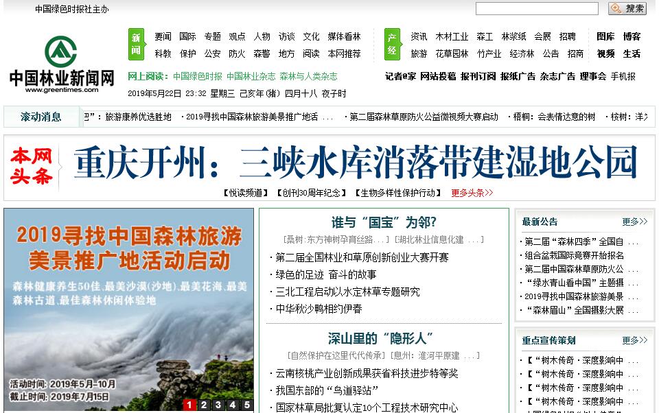 | 网站简介: 中国林业新闻网(www.greentimes.com或www.zglyxww.com),由国家林业和草原局主管,中国绿色时报社主办,是我国林业行业的新闻发布权威网站,是绿色产业资讯的集结中心,是林产品贸易的电子商务平台。中国林业新闻网是面向林业和生态建设行业、涉林企事业单位及全社会的网络新闻媒体,是中国林业新闻事业发展在网络空间的延伸,是为全体务林人营造的共有的网上家园。中国林业新闻网功能定位于5个方面:网上原创林业新闻的发布中心;林业信息、企业资讯的实用大全;网络广告、电子商务的发布平台;娱乐休闲、网上交流的互动空间;企业形象、产品推介的窗口。 |