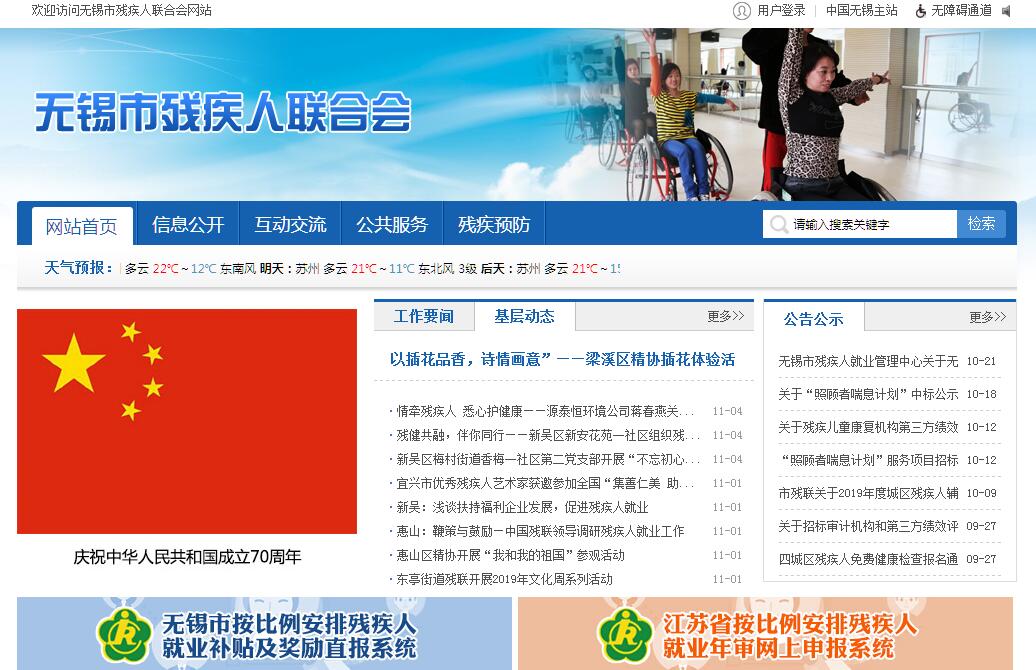 无锡市残疾人联合会,一、贯彻执行《中华人民共和国残疾人保障法》和国家、省、市有关残疾人工作的方针、政策和法律、法规。听取残疾人的意见,反映残疾人的需求,维护残疾人权益,为残疾人服务。二、管理和指导聋人协会、盲人协会、肢体协会、智力和精神残疾人亲友会,团结、教育残疾人遵守法律,履行应尽义务,发扬乐观进取精神,自尊、自信、自强、自立。三、负责残疾人事业宣传工作,弘扬人道主义,沟通政府、社会与残疾人之间的联系,树立助残先进和自强自立典型,动员社会理解、尊重、关心、帮助残疾人。四、研究起草全市残疾人事业的有关政策和地方性法规,并组织实施;研究拟订全市残疾人事业中长期发展规划和年度工作计划;指导全市残疾人工作的改革和发展。五、负责市残疾评定委员会日常工作,承担残疾评定,管理和发放残疾人证件。六、组织制定和实施残疾人康复工作计划;指导和协调残疾人康复机构的业务工作;协调有关部门开展残疾预防工作。七、制定残疾人劳动就业工作计划;组织实施残疾人分散按比例就业,协助有关部门推动残疾人集中就业,促进残疾人自谋职业。负责残疾人劳动服务网络的建设与管理;发展盲人按摩业,负责盲人按摩机构的指导和管理。八、组织制定和实施残疾人教育工作计划;促进和开展残疾人学前教育、义务教育、职业教育、高等中等以上教育和成人教育;负责盲文、手语的推广和培训。九、开展残疾人文化、体育、用品用具供应、扶贫、法律援助、社会保障、福利服务、无障碍设施等工作,创造良好的社会环境和条件,扶助残疾人平等参与社会生活。十、负责残疾人事业计划财务工作,管理本级残疾人就业保障金;指导市(县)、区残联和直属单位财务工作。十一、负责全市残疾人工作领域的对外交流与合作。十二、承担市人民政府残疾人工作委员会的日常工作。十三、指导和管理直属单位和各类直属残疾人社团组织。十四、承办市委、市政府交办的其他事项。