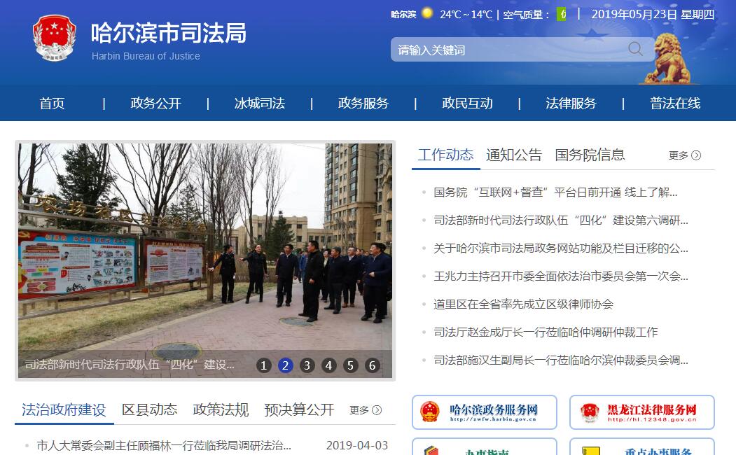 哈尔滨市司法局主要职责:(一)贯彻执行国家司法行政工作方针、政策和法律、法规、规章,拟定并组织实施全市司法行政工作中、长期规划和年度计划。(二)负责全市监狱管理工作并承担相应责任,监督和指导市属监狱执行刑罚、改造罪犯的工作。(三)负责全市强制隔离戒毒管理工作并承担相应责任,指导和监督全市强制隔离戒毒所教育矫治和生活卫生等工作。(四)负责全市法治宣传教育工作。(五)负责管理全市律师、公证工作并承担相应责任。(六)负责指导、监督全市基层司法所、法律服务所和人民调解组织工作。(七)负责监督实施全市刑满释放人员的安置帮教工作;负责组织实施并指导、监督全市社区矫正工作。(八)负责管理全市法律援助工作,对全市“12348”法律服务热线实施监督和指导。(九)负责管理全市面向社会服务的司法鉴定组织并承担相应责任,指导协调全市司法鉴定工作。(十)负责拟定并组织实施司法行政地方性法规、政府规章和市政府规范性文件草案,负责本部门、本系统行政执法层级监督的具体工作;指导全市司法行政机关的行政处罚、行政复议、行政应诉和国家赔偿工作。(十一)负责管理全市司法行政系统警务装备工作并承担相应责任,审核监督市属监狱、戒毒所预、决算和重大立项工作。(十二)负责组织实施国家司法考试相关工作。(十三)负责全市司法行政系统队伍建设和思想政治工作;负责所属单位领导班子建设;负责全市司法行政系统干警培训和警务管理工作;协助区、县(市)管理司法局领导干部。(十四)承担法律法规赋予的其他权力和义务,承办市委、市政府交办的其它事项。