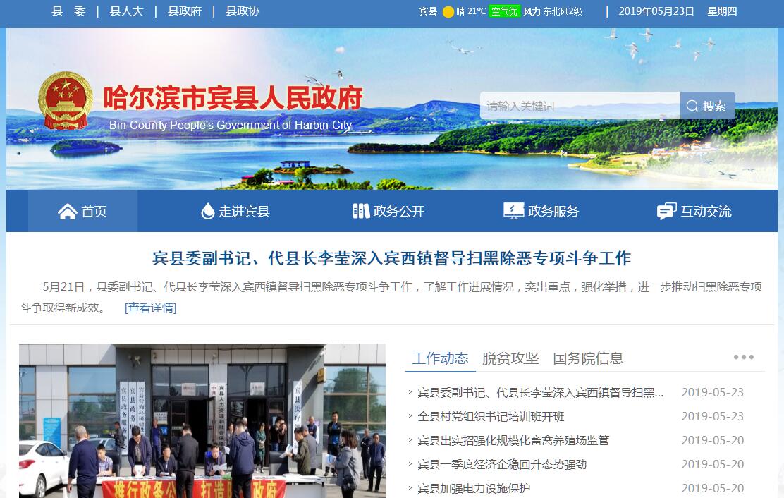 宾县位于哈尔滨市东部,全县总面积3844.7平方公里,常住人口57.6万人,下辖5个乡、12个镇、143个村委会,43个居委会。2017年,实现地区生产总值327.3亿元,比上年增长7.4%。实现地方财政收入7.2亿元,增长9%;规模以上工业增加值增长9.1%;完成固定资产投资193.8亿元,增长6%;实现社会消费品零售总额97.4亿元,增长9.1%。宾县历史悠久,在不同时期都有区划所属。七世纪,为唐朝渤海郡下的高州(《中国历史地图》记载为今宾州城址);十世纪,金时期为会宁府下的曲江县(今新甸镇仁和村址);明朝建蜚克图卫(今宾西镇政府驻地,卫相当于县级)。 1880年设宾州厅,自古素有先有宾州府后有哈尔滨之美称,是东三省的交通要地。宾县位于松花江南岸,地处张广才岭和松江平原交汇处,行政隶属哈尔滨市,是哈尔滨市卫星城。属寒温带大陆性气候区,年平均气温4.4℃,降水量570毫米,无霜期146天。自然概貌是“五山半水四分半田”,全县耕地面积251万亩。宾县物产丰富,2017年全县蔬菜种植面积6.7万亩,总产量10万吨;全县烤烟种植面积3.1万亩,分布在14个乡镇。2017年粮食总产量达21.92亿斤,地产果品种繁多,属绿色无公害水果,深受消费者喜欢;肉牛、生猪正朝着产业化方向发展,2017年黄牛饲养量63.5万头,生猪饲养量108万头,初步形成产、加、销一条龙,规模化基地化发展态势。 矿产资源丰富,主要有铜、熔炼石英、陶粒页岩、大理岩、白粘土、建筑石、天然饮用矿泉水等资源,其中大理岩探明储量达2.1亿吨。全县有林地面积16.2万公顷,木材蓄积量676.5万立方米;有人参、刺五加等179种中草药;蘑菇、山野菜等林副产品年采集量达2000吨。宾县旅游资源十分丰富,总体构架为“一处湖水,两个基地,八座山峦”,简称“128规划”。“一处湖水”即二龙湖;“两个基地”即红色旅游基地中共北满分局旧址和以哲公园;“八座山峦”即长寿山、香炉山、大顶山、大青山、猴石山、高丽帽子山、花乐山、双凤山等八座生态旅游山峦。全国著名的旅游胜地二龙山就座落于宾县西南6公里,这里山清水秀,环境优美,四季分明,初春绿满山岗、盛夏鸟语花香、金秋层林尽染、隆冬雪沃山川,是休闲度假的理想之地。东北三省最大的万佛寺,就位于北山之上,近几年客流量在150万人次以上,游乐设施不断完善健全,已成为宣传宾县的亮丽窗口,以二龙山为龙头,大顶山、青莲寺、长寿森林公园等其他旅游胜地也不断规划建设,在省内外享有盛名。