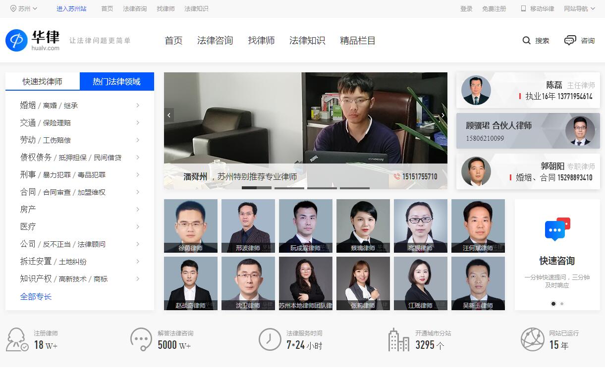 | 网站简介: 华律网(www.66Law.cn)创建于2004年,隶属于成都华律网络服务有限公司,是中国最早的在线法律咨询平台之一。 华律网,始终秉承着“一切以法律需求用户为中心”的发展理念,与全国18万律师会员一起搭建一站式法律服务平台,涵盖全方位法律常识查询、线上问律师、电话咨询律师、预约律师线下见面等法律服务,倡导全民知法,懂法,用法。经过十四年的快速发展,华律网已经成为中国知名的在线法律服务平台。 |