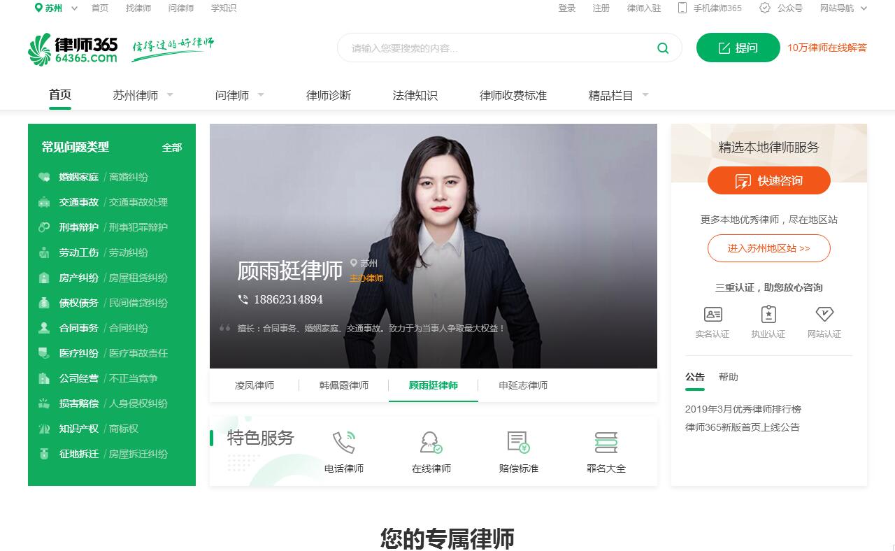 | 网站简介: 律师365,专业的律师法律咨询网站:为寻求法律咨询及聘请律师的朋友提供快捷、高效的找律师、在线咨询律师和查法律知识等服务,是网上找律师的优选网站! |