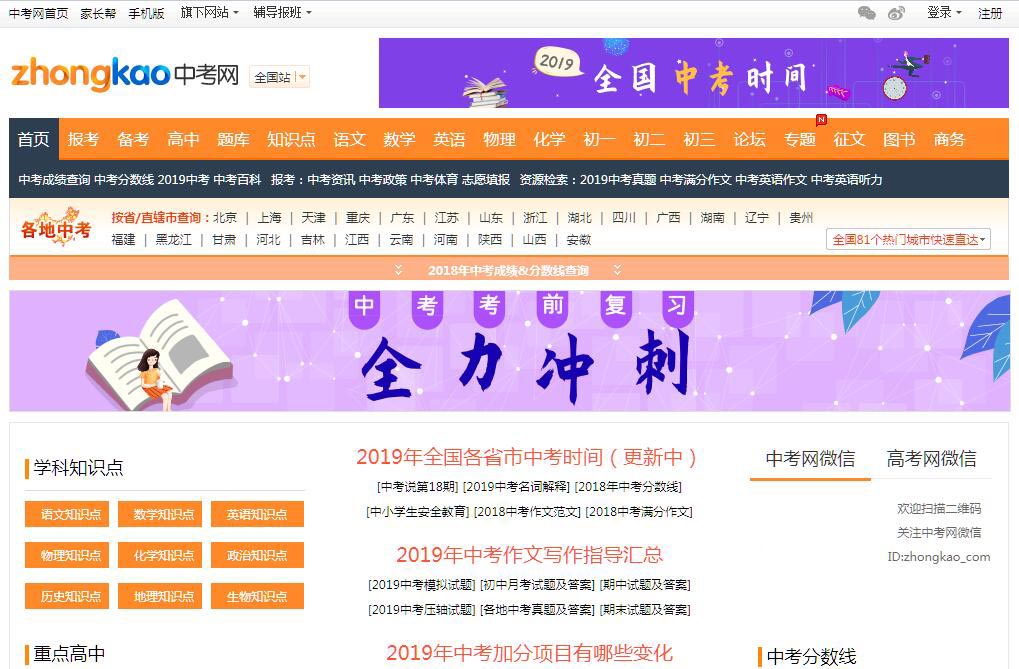| 网站简介: 中考网是国内专业的中考门户网站,为广大考生提供:中考成绩查询、中考分数线、中考时间、中考报名、中考满分作文、中考试题答案等中考及时资讯。 |