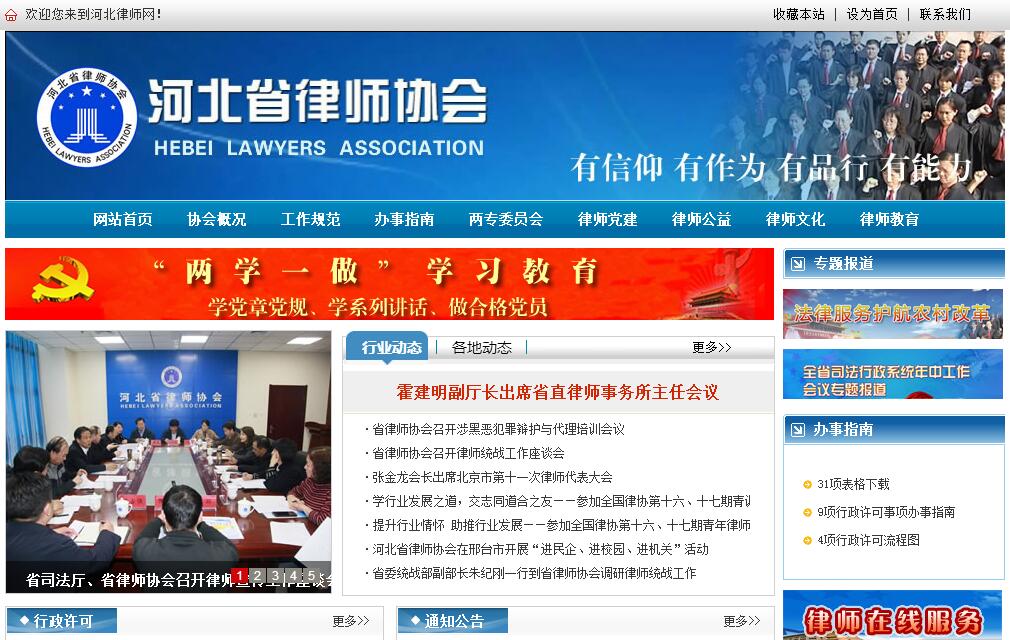 河北省律师协会成立于1982年1月,是社会团体法人,中华全国律师协会团体会员。本协会是河北省律师行业自律性组织,依法对律师实行行业管理。河北省律师协会旨在团结和教育会员,维护宪法和法律的尊严,忠实于律师事业,恪守律师职业道德和执业纪律;维护会员和合法权益;提高会员的业务素养;加强行业自律,促进律师事业的健康发展,以发展社会主义民主,健全社会主义法制,促进社会的文明和进步。河北省律师协会每四年举行一次律师代表大会,选举产生理事会,理事会选举本届会长、副会长和常务理事。在理事会闭会期间,常务理事会行使理事会的职权,执行河北省律师代表大会的决议。根据《中华人民共和国律师法》和《河北律师协会章程》,协会的主要职责为:(一)保障律师依法执业,维护律师的合法权益;(二)制定并监督实施律师执业规范;(三)进行律师职业道德和执业纪律的教育、检查和监督;(四)总结、交流律师工作经验,提高会员的执业水准;(五)组织律师业务培训;(六)处理对会员的投诉;(七)制定并监督实施会员奖惩办法;(八)组织律师开展对外交流;(九)调处会员执业活动中发生的纠纷;(十)参与立法活动,向有关部门提出法制建设及律师制度建设的建议;(十一)举办律师福利事业;(十二)司法行政部门及上级律师协会委托行使的其他职责;(十三)法律规定的其他职责。