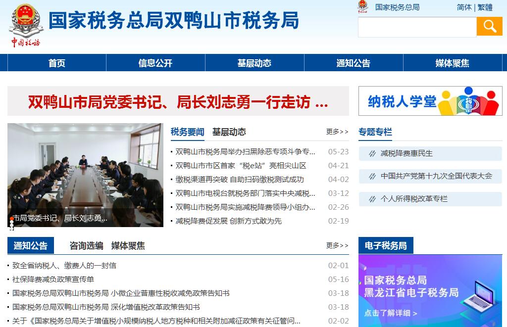 国家税务总局双鸭山市税务局的主要职责是:一、负责贯彻执行党的路线、方针、政策,加强党的全面领导,履行全面从严治党责任,负责党的建设和思想政治建设工作。二、负责贯彻执行税收、社会保险费和有关非税收入法律、法规、规章和规范性文件,研究制定具体实施办法。组织落实国家规定的税收优惠政策。三、负责研究拟定本系统税收、社会保险费和有关非税收入中长期规划,参与拟定税收、社会保险费和有关非税收入预算目标并依法组织实施。负责本系统税收、社会保险费和有关非税收入的会统核算工作。组织开展收入分析预测。四、负责开展税收经济分析和税收政策效应分析,为国家税务总局黑龙江省税务局和市委、市政府提供决策参考。五、负责所辖区域内各项税收、社会保险费和有关非税收入征收管理。组织实施税(费)源监控和风险管理,加强大企业和自然人税收管理。六、负责组织实施本系统税收、社会保险费和有关非税收入服务体系建设。组织开展纳税服务、税收宣传工作,保护纳税人、缴费人合法权益。承担涉及税收、社会保险费和有关非税收入的行政处罚听证、行政复议和行政诉讼事项。七、负责所辖区域内国际税收和进出口税收管理工作,组织反避税调查和出口退税事项办理。八、负责组织实施所辖区域内税务稽查和社会保险费、有关非税收入检查工作。九、负责增值税专用发票、普通发票和其他各类发票管理。负责税收、社会保险费和有关非税收入票证管理。十、负责组织实施本系统各项税收、社会保险费和有关非税收入征管信息化建设和数据治理工作。十一、负责本系统内部控制机制建设工作,开展对本系统贯彻执行党中央、国务院重大决策及上级工作部署情况的督查督办,组织实施税收执法督察。十二、负责本系统基层建设和干部队伍建设工作,加强领导班子和后备干部队伍建设,承担税务人才培养和干部教育培训工作。负责本系统绩效管理和干部考核工作。十三、负责本系统机构、编制、经费和资产管理工作。十四、完成国家税务总局黑龙江省税务局和市委、市政府交办的其他工作。