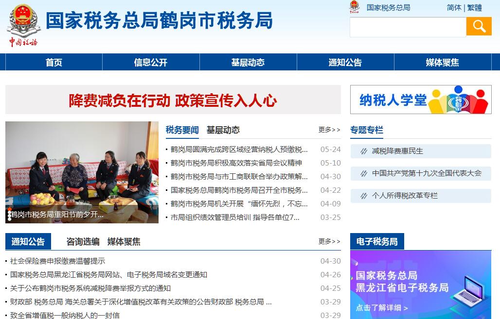 国家税务总局鹤岗市税务局的主要职责是:(一)负责贯彻执行党的路线、方针、政策,加强党的全面领导,履行全面从严治党责任,负责党的建设和思想政治建设工作。(二)负责贯彻执行税收、社会保险费和有关非税收入法律、法规、规章和规范性文件,研究制定具体实施办法。组织落实国家规定的税收优惠政策。(三)负责研究拟定本系统税收、社会保险费和有关非税收入中长期规划,参与拟定税收、社会保险费和有关非税收入预算目标并依法组织实施。负责本系统税收、社会保险费和有关非税收入的会统核算工作。组织开展收入分析预测。(四)负责开展税收经济分析和税收政策效应分析,为国家税务总局黑龙江省税务局和市委、市政府提供决策参考。(五)负责所辖区域内各项税收、社会保险费和有关非税收入征收管理。组织实施税(费)源监控和风险管理,加强大企业和自然人税收管理。(六)负责组织实施本系统税收、社会保险费和有关非税收入服务体系建设。组织开展纳税服务、税收宣传工作,保护纳税人、缴费人合法权益。承担涉及税收、社会保险费和有关非税收入的行政处罚听证、行政复议和行政诉讼事项。(七)负责所辖区域内国际税收和进出口税收管理工作,组织反避税调查和出口退税事项办理。(八)负责组织实施所辖区域内税务稽查和社会保险费、有关非税收入检查工作。(九)负责增值税专用发票、普通发票和其他各类发票管理。负责税收、社会保险费和有关非税收入票证管理。(十)负责组织实施本系统各项税收、社会保险费和有关非税收入征管信息化建设和数据治理工作。(十一)负责本系统内部控制机制建设工作,开展对本系统贯彻执行党中央、国务院重大决策及上级工作部署情况的督查督办,组织实施税收执法督察。(十二)负责本系统基层建设和干部队伍建设工作,加强领导班子和后备干部队伍建设,承担税务人才培养和干部教育培训工作。负责本系统绩效管理和干部考核工作。(十三)负责本系统机构、编制、经费和资产管理工作。 (十四)完成国家税务总局黑龙江省税务局和市委、市政府交办的其他工作。