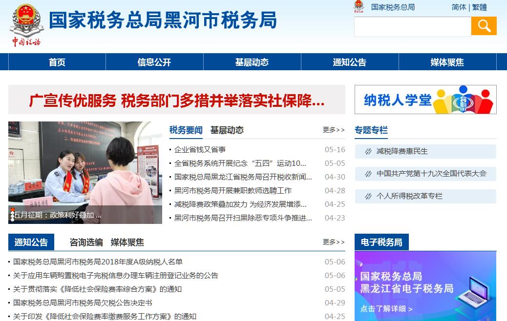 国家税务总局黑河市税务局的主要职责是:(一)负责贯彻执行党的路线、方针、政策,加强党的全面领导,履行全面从严治党责任,负责党的建设和思想政治建设工作。(二)负责贯彻执行税收、社会保险费和有关非税收入法律、法规、规章和规范性文件,研究制定具体实施办法。组织落实国家规定的税收优惠政策。(三)负责研究拟定本系统税收、社会保险费和有关非税收入中长期规划,参与拟定税收、社会保险费和有关非税收入预算目标并依法组织实施。负责本系统税收、社会保险费和有关非税收入的会统核算工作。组织开展收入分析预测。(四)负责开展税收经济分析和税收政策效应分析,为国家税务总局黑龙江省税务局和市委、市政府提供决策参考。(五)负责所辖区域内各项税收、社会保险费和有关非税收入征收管理。组织实施税(费)源监控和风险管理,加强大企业和自然人税收管理。(六)负责组织实施本系统税收、社会保险费和有关非税收入服务体系建设。组织开展纳税服务、税收宣传工作,保护纳税人、缴费人合法权益。承担涉及税收、社会保险费和有关非税收入的行政处罚听证、行政复议和行政诉讼事项。(七)负责所辖区域内国际税收和进出口税收管理工作,组织反避税调查和出口退税事项办理。(八)负责组织实施所辖区域内税务稽查和社会保险费、有关非税收入检查工作。(九)负责增值税专用发票、普通发票和其他各类发票管理。负责税收、社会保险费和有关非税收入票证管理。(十)负责组织实施本系统各项税收、社会保险费和有关非税收入征管信息化建设和数据治理工作。(十一)负责本系统内部控制机制建设工作,开展对本系统贯彻执行党中央、国务院重大决策及上级工作部署情况的督查督办,组织实施税收执法督察。(十二)负责本系统基层建设和干部队伍建设工作,加强领导班子和后备干部队伍建设,承担税务人才培养和干部教育培训工作。负责本系统绩效管理和干部考核工作。(十三)负责本系统机构、编制、经费和资产管理工作。(十四)完成国家税务总局黑龙江省税务局和市委、市政府交办的其他工作。