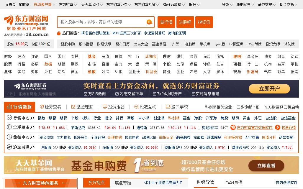 | 网站简介: 东方财富网创办于2004年,始终坚持“用户为王”的经营理念,为全国广大投资者提供专业、及时、全面的金融信息服务。2010年3月,东方财富网成功登陆深圳证券交易所,从创立到成功上市,公司只用了5年时间,成为中国创业板IPO历程上的一颗耀眼明星。东方财富网旗下现拥有天天基金网、股吧、东方财富终端、东方财富证券、choice数据等强势业务版块及产品。截至2018年3月31日,天天基金网平台共上线各类公募基金产品5600多只,基金销售量累计近19000亿元。为推进“沪港通”和促进中国资本市场国际化,2015年,公司相继成功收购香港宝华世纪证券及西藏同信证券,正式翻开了进军互联网券商的崭新篇章。根据上海证券交易所和深圳证券交易所会员股票交易金额数据统计,2018年3月东方财富证券股票经纪业务市场份额为2.20%,在所有证券公司中排名第15位,相比上年同期排名提升了5位。东方财富证券融资融券市场份额为1.03%,市场排名第23 位,相比上年同期排名提升了22位。未来,东方财富网将进一步完善互联网财经大平台建设,并着力于构建一站式金融服务平台,为用户提供全方位、一站式的金融理财服务。 |