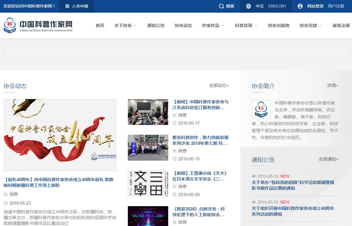 | 网站简介: 中国科普作家网由中国科普作家协会主办。中国科普作家协会是以科普作家为主体,并由众多科普相关人士和有关单位自愿组成的全国性、学术性、非营利性的社会组织。 |