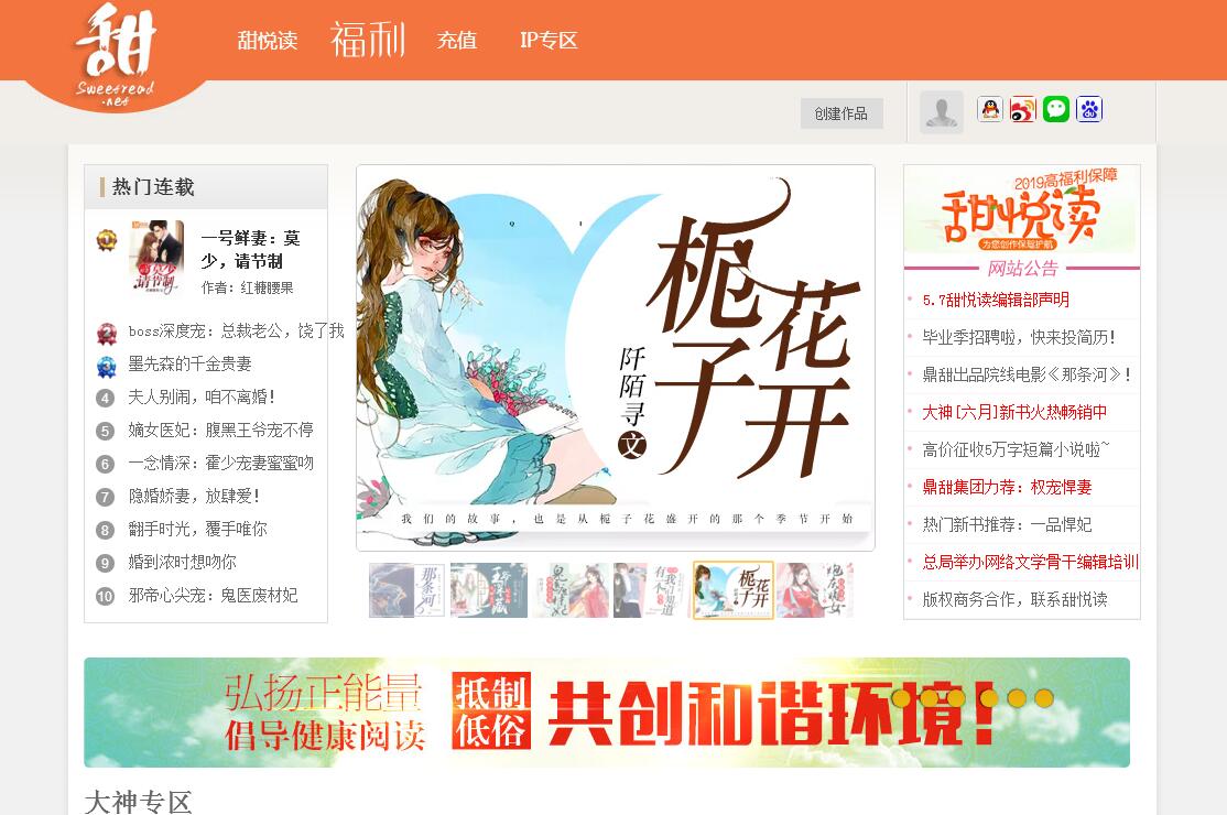 甜悦读是于2014年2月在上海鼎甜科技有限公司注资下,成立的国内文学市场先锋阅读品牌。甜悦读由行业内资深内容运营团队组成,背靠强大资本进行有效战略方向布局,目前核心主体为互联网(PC)、移动互联网(无线wap+app)综合的数字阅读\出版业务,提出了“让阅读来点滋味”的口号。目前,甜悦读已吸引数百位无线知名实力原创作者加盟,为塑立公司的整体品牌价值,将甜悦读打造成为国内原创文学领域优秀阅读品牌,公司主体阅读业务已建立一条“精品版权资源引入——线上版权价值运营(包括海外)——线下版权拓展(包括海外)——下游版权形态自主或合作开发”完整的新运行生态机制,使作品版权得到最大程度的价值。在成立一年之际,甜悦读在业内拥有良好的口碑,单月在站内过万的作品有多部。在互联网上,甜悦读已与中国移动三大运营商和阅读、沃阅读、天翼阅读达成合作,并同时和腾讯文学、百度文学、塔读文学、久邦文学、凤凰读书、网易云阅读、掌阅ireader等众多平台携手。基于网络原创文学具备多种版权的特质,由优质作品内容上延伸出去的多渠道、多版权,将逐渐主导整个互联网的娱乐模式,成为互联网娱乐产业链条的最上游。游戏、影视、动漫、出版等多种下游形态,都在被这个领域里的内容辐射覆盖。甜悦读已与国内多家知名影视集团、动漫集团和游戏开发商及发行商合作,如《我的合租老婆》等优质作品,已开始筹备网络剧拍摄的前期工作。其他重要作品也将陆续改编影视剧和网络游戏。甜悦读网站在这个时候上线,未来的发展计划,也定位于此。以优质内容为基点,着重打造作家明星,扩大作品、作家、网站三者的品牌名誉度,形成闭环大IP战略工作,做好粉丝经济商业模式,达成共赢。为努力创建可以涵盖整个版权的产业链条,真正成为国内原创文学领域先锋阅读品牌,甜悦读最终将会成为一个基于移动终端的集阅读、创作、销售、互动等多项功能于一体的大型综合原创文学+数字出版开放式平台。2016年,甜悦读引进了《栀子花开》、《有一个地方只有我们知道》等优秀影视作品,承制了网络大电影《异能事务所之嗜血判官》,并与各大影视、出版社、游戏、动漫公司建立良好的合作关系。2017年5月,我们参与出品了由王庆祥、迟蓬、张杨果而等主演的院线电影《那条河》,同名小说也在甜悦读首发,预计2018年在各大院线上映。2017年11月,我们独家出品的漫画《侍器人》在腾讯动漫首发更新6话后,点击突破1千万,收藏破2万。部分优秀作品:《我的合租老婆》、《闪婚老公不靠谱》、《买一送一:嫁给亿万首席》、《我的床上有只鬼》、《陪安东尼度过漫长的岁月》等。