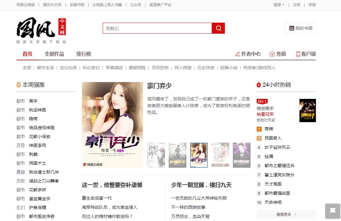 | 网站简介: 国风中文网-网易文学旗下网站。全面丰富的电子书籍、顶级杂志、精彩漫画、包含传统畅销书籍,涵盖青春、文艺、人文、社科、经管、励志、亲子、两性、名著等多种品类,更有众多免费内容提供。 |