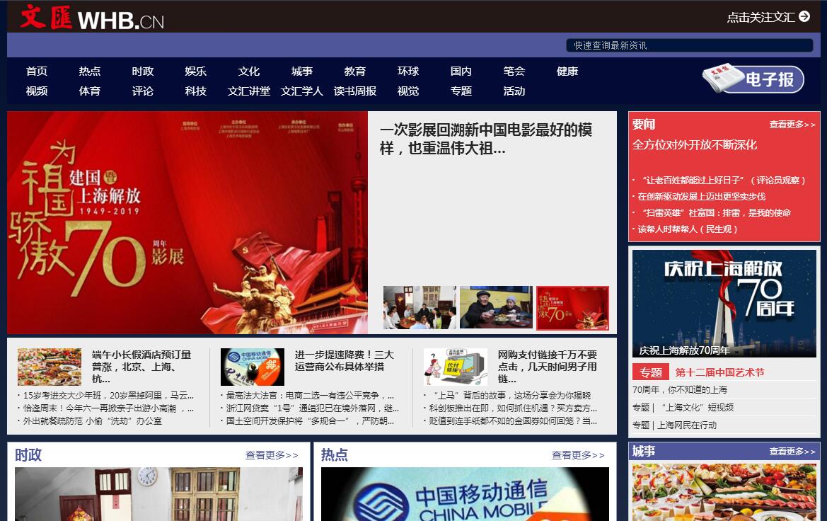 《文汇报》创办于1938年1月25日,是一份上海出版,在全国具有广泛影响的以知识分子为主要读者对象的大型综合性日报,是中国连续出版历史最长的综合性日报之一。1938年1月25日,《文汇报》就像一只凤凰,在熊熊燃烧的抗日烽火中振翅起飞。从上世纪五六十年代大力推动百家争鸣,到七八十年代在上海率先刊发关于真理标准讨论的文章,旗帜鲜明地立于思想解放的潮头,文汇报一直是知识分子意愿和心声的忠实记录者和传播者。在鼎盛时期,发行量为171万。改革开放30年来,文汇报在推动科教兴国、建设创新型国家、文化大发展大繁荣中,发挥着积极和独特的作用。目前,《文汇报》每天平均出版对开12版,日发行量50多万份,发行至全世界40多个国家和地区。《文汇报》有一些特别引人注目的新闻类版面和专栏。“文汇时评”由国内知名专家学者撰稿,评论时事、针砭时弊,凸现权威性,每周五期,2003年获得全国优秀新闻专栏最高奖——“中国新闻名专栏”奖;“环球视窗”每天向读者提供国际新闻深度报道,运用驻外记者的强势资源,跟踪国际热点。《文汇报》有多个具有深厚的文化底蕴和知识含量的专副刊。《笔会》、《科技文摘》、《天下》、《文汇教育》、《文汇周末》、《文汇学人》、《经济观察》、《健康生活》等都深得读者赞赏。《文汇报》在北京、南京、杭州、武汉、西安设有记者站、派驻常驻记者;在美国、法国、德国、俄罗斯、日本、印度、菲律宾、尼泊尔、伊朗、吉尔吉斯斯坦、墨西哥、联合国等国家、地区和国际机构派驻常驻记者。《文汇报》在上海拥有全数字化的新闻采编系统;在长春、成都等地设有9个卫星传版分印点,报纸与上海同步印刷,主要城市和周边地区都能当天面市,发行覆盖全国。《文汇报》拥有自己的网络文汇网(www.whb.cn),全国乃至世界各地的读者可以在网上阅读报纸并与报社互动。