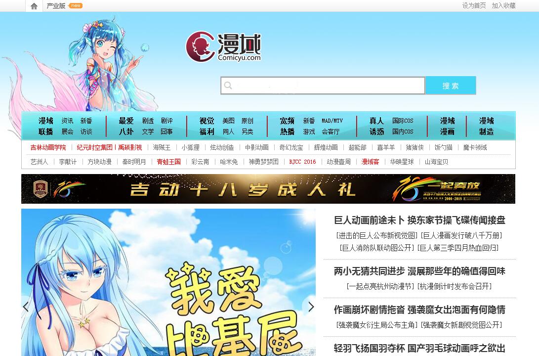 | 网站简介: 漫域是中国第一大专业动漫综合门户网站。漫域提供最新的动漫资讯和动漫行业数据报告,为动漫爱好者打造最及时的新番动漫画播报平台,同时还为动漫从业人员、企业家和投资顾问提供最权威的动漫行业数据分析报告,漫域因专注而专业,因专业而卓越。第十二届中国国际动漫节,漫域网全程报道。吉林禹硕动漫游戏科技股份有限公司总公司位于吉林省长春市,北京和上海设有分公司。长春总公司主营动画片和动漫衍生产品的策划、生产、制作、发行、销售。北京分公司负责门户网站漫域网(www.comicyu.com)的运营,漫域网是新一代创意文化内容与数字娱乐体验相结合的网站平台、营销平台。上海分公司集数字娱乐和文化传播业务于一体,主营网络游戏的开发运营,并提供互联网社区服务;高品质的网络娱乐产品和服务,必将引领全新的健康的娱乐生活方式。 |