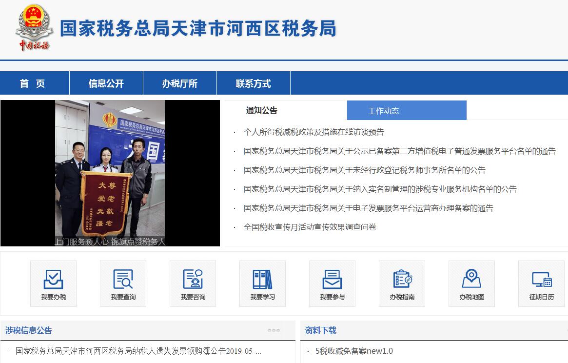 国家税务总局天津市河西区税务局的主要职责是:(一)负责贯彻执行党的路线、方针、政策,加强党的全面领导,履行全面从严治党责任,负责党的建设和思想政治建设工作。(二)负责贯彻执行税收、社会保险费和有关非税收入的法律、法规、规章和规范性文件,并结合本区实际情况,具体组织实施。组织落实国家规定的税收优惠政策。(三)负责研究拟定本单位税收、社会保险费和有关非税收入年度计划,落实税收、社会保险费和有关非税收入预算目标。负责本单位税收、社会保险费和有关非税收入的会统核算工作。组织开展收入分析预测。(四)负责开展税收经济分析和税收政策效应分析,为市局和区委、区政府提供决策参考。(五)负责所辖区域内各项税收、社会保险费和有关非税收入征收管理。组织实施税(费)源监控和风险管理,加强大企业和自然人税收管理。(六)负责组织开展纳税服务、税收宣传工作,保护纳税人、缴费人合法权益。承担涉及税收、社会保险费和有关非税收入的行政处罚听证、行政复议和行政诉讼事项。(七)负责所辖区域内国际税收和进出口税收管理工作,组织反避税调查和出口退税事项办理。(八)负责增值税专用发票、普通发票和其他各类发票管理。负责税收、社会保险费和有关非税收入票证管理。(九)负责组织实施本单位各项税收、社会保险费和有关非税收入征管信息化建设和数据治理工作。(十)负责本单位内部控制机制建设工作。(十一)负责本单位干部队伍建设工作,加强后备干部队伍建设,承担税务人才培养和干部教育培训工作。负责本单位绩效管理和干部考核工作。(十二)负责本单位机构、编制、经费和资产管理工作。(十三)完成市局和区委、区政府交办的其他工作。