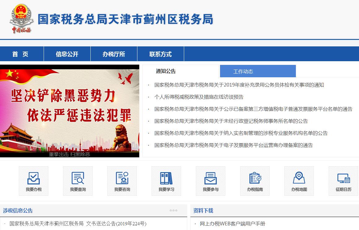 国家税务总局天津市蓟州区税务局的主要职责是:(一)负责贯彻执行党的路线、方针、政策,加强党的全面领导,履行全面从严治党责任,负责党的建设和思想政治建设工作。(二)负责贯彻执行税收、社会保险费和有关非税收入的法律、法规、规章和规范性文件,并结合本区实际情况,具体组织实施。组织落实国家规定的税收优惠政策。(三)负责研究拟定本单位税收、社会保险费和有关非税收入年度计划,落实税收、社会保险费和有关非税收入预算目标。负责本单位税收、社会保险费和有关非税收入的会统核算工作。组织开展收入分析预测。(四)负责开展税收经济分析和税收政策效应分析,为市局和区委、区政府提供决策参考。(五)负责所辖区域内各项税收、社会保险费和有关非税收入征收管理。组织实施税(费)源监控和风险管理,加强大企业和自然人税收管理。(六)负责组织开展纳税服务、税收宣传工作,保护纳税人、缴费人合法权益。承担涉及税收、社会保险费和有关非税收入的行政处罚听证、行政复议和行政诉讼事项。(七)负责所辖区域内国际税收和进出口税收管理工作,组织反避税调查和出口退税事项办理。(八)负责增值税专用发票、普通发票和其他各类发票管理。负责税收、社会保险费和有关非税收入票证管理。(九)负责组织实施本单位各项税收、社会保险费和有关非税收入征管信息化建设和数据治理工作。(十)负责本单位内部控制机制建设工作。(十一)负责本单位干部队伍建设工作,加强后备干部队伍建设,承担税务人才培养和干部教育培训工作。负责本单位绩效管理和干部考核工作。(十二)负责本单位机构、编制、经费和资产管理工作。(十三)完成市局和区委、区政府交办的其他工作。
