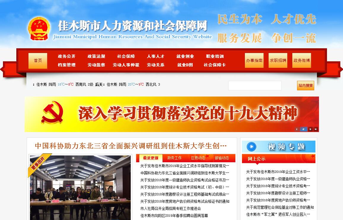 佳木斯市人力资源和社会保障局主要职责:(一)贯彻落实全面从严治党要求,切实履行领导本单位、本系统党建工作的主体责任,以党的政治建设为统领,全面推进党的政治建设、思想建设、组织建设、作风建设、纪律建设,深入推进反腐败斗争;以提升组织力为重点,加强党的基层组织标准化、规范化建设,不断提高党的建设质量。(二)贯彻执行国家、省和市人力资源和社会保障事业相关法律法规、规章和政策。(三)负责拟订人力资源市场发展规划和人力资源公共服务业发展、人力资源流动政策并组织实施,完善统一的人力资源市场体系建设,发挥市场在人力资源配置中的决定性作用,促进人力资源合理流动、有效配置。(四)负责促进就业创业工作,拟订统筹城乡的就业创业发展规划和政策,完善公共就业创业服务体系。统筹建立面向城乡劳动者的职业技能培训制度,负责技工教育工作。拟订创业带动就业政策并组织实施,拟订就业援助制度。负责高校毕业生就业创业指导和服务工作。(五)统筹推进建立覆盖城乡的多层次社会保障体系。拟订全市养老、失业、工伤等社会保险及其补充保险发展规划,编制全市相关社会保险基金预决算草案,监督管理养老、失业、工伤等社会保险及其补充保险基金运行。负责就业和相关社会保险基金预测预警,拟订应对预案,实施预防、调节和控制,会同有关部门实施全民参保计划并建立全市统一的社会保险公共服务平台。(六)统筹拟订劳动关系政策,完善劳动关系协商协调机制。拟订职工工作时间、休息休假和假期制度,贯彻落实国家消除非法使用童工政策和女工、未成年工特殊劳动保护政策。拟订劳动人事争议调解仲裁制度,拟订全市人力资源和社会保障领域信访维稳工作制度,组织实施劳动保障监察,协调劳动者维权工作,依法查处重大案件。(七)负责政府部门人才综合管理工作,承担政府层面制定人才政策、构建人才服务体系、培育和发展人力资源市场等工作。牵头推进深化职称制度改革,拟订专业技术人员管理、继续教育和博士后管理等政策并组织实施,负责高层次专业技术人才选拔培养和管理服务工作。负责吸引留学人员工作或定居政策及实施。组织拟订技能人才培养、评价、使用和激励制度会同有关部门指导事业单位人事制度改革,按照管理权限负责规范事业单位岗位设置、公开招聘、聘用合同等人事综合管理工作,拟订事业单位工作人员和机关工勤人员管理政策并指导监督实施。完善职业资格制度,健全职业技能多元化评价政策体系。(八)会同有关部门指导事业单位人事制度改革,按照管理权限负责规范事业单位岗位设置、公开招聘、聘用合同等人事综合管理工作,拟订事业单位工作人员和机关工勤人员管理政策并指导监督实施。(九)会同有关部门拟订全市表彰奖励制度,综合管理全市表彰奖励工作,根据授权承办以市委、市政府名义开展的市级表彰奖励活动。(十)贯彻实施国家、省关于事业单位工作人员和机关工勤人员工资、津贴补贴的政策和标准,负责企事业单位工作人员和机关工勤人员工资核定、正常增长和支付保障机制建设。负责实施企事业单位工作人员和机关工勤人员的福利和离退休政策。(十一)会同有关部门拟订农民工工作的综合性政策和规划,推动相关政策落实;负责拟订家庭服务业发展规划并组织实施;协调处理涉及农民工的重大事件,协调解决重点难点问题;指导协调农民工工作服务体系和信息监测体系建设。(十二)负责县(市)区劳动监察机构监督检查,依法纠正和查处违法违规行为,督办重大劳动保障违法案件,组织处理劳动保障群体性突发案件。负责用人单位劳动保障诚信等级评价工作。负责农民工工资支付保障工作综合管理。依法对辖区内职业介绍、职业技能培训、职业技能考核鉴定、工伤保险协议医疗等机构和中省直(含部队)用人单位实施劳动监察。(十三)负责劳动、人事争议案件的预防、受理、调解、仲裁工作。(十四)负责人力资源和社会保障领域的对外交流合作工作。(十五)完成市委、市政府交办的其他任务。