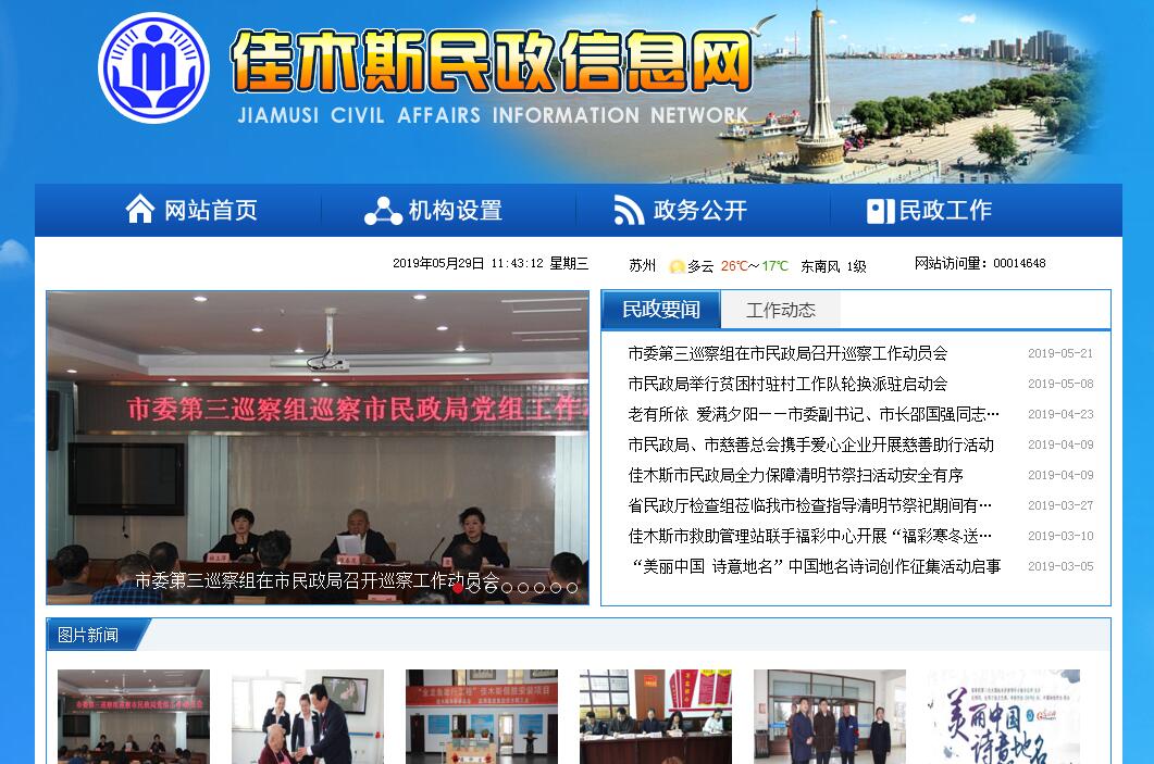 佳木斯民政局主要职责:(一)贯彻落实全面从严治党要求,切实履行领导本单位、本系统党建工作的主体责任,以党的政治建设为统领,全面推进党的政治建设、思想建设、组织建设、作风建设、纪律建设,深入推进反腐败斗争;以提升组织力为重点,加强党的基层组织标准化、规范化建设,不断提高党的建设质量。(二)贯彻实施国家、省关于民政工作的方针、政策和法律法规。参与拟订民政工作规范性文件、相关政策和民政事业发展规划并组织实施。(三)拟订全市社会组织管理政策和发展规划并组织实施。依法对权限内社会组织进行登记审批管理和执法监督,承担市社会组织党工委日常工作。(四)拟订社会救助政策、标准并组织实施。负责城乡居民最低生活保障、特困人员救助供养、临时救助、生活无着流浪乞讨人员救助工作。(五)拟订城乡基层群众自治建设和社区治理政策,指导城乡社区治理体系和治理能力建设,指导村(居)民委员会换届选举,提出加强和改进城乡基层政权建设的建议,推动基层民主政治建设。(六)负责乡(镇)级及以上行政区域的设立、命名、变更和政府驻地迁移的审核和报批工作。组织指导乡(镇)级及以上行政区域界线的勘定和管理工作,承担地名管理工作。负责跨县(市)重要自然地理实体的命名、更名的审核工作。(七)负责推进婚俗改革。负责涉外、涉港澳台及华侨婚姻登记工作。负责华侨和涉港澳台儿童收养登记。指导和监督婚姻登记、收养登记。(八)拟订殡葬管理政策、服务规范并组织实施,推进殡葬改革。(九)统筹推进、督促指导、监督管理养老服务工作,拟订养老服务体系建设规划、政策、标准并组织实施,承担老年人福利和特殊困难老年人救助工作。(十)落实残疾人权益保护政策,统筹推进残疾人福利制度建设和康复辅助器具产业发展。(十一)落实儿童福利、孤弃儿童保障、儿童收养、儿童救助保护政策、标准,健全农村留守儿童关爱服务体系和困境儿童保障制度。(十二)组织拟订促进慈善事业发展政策,指导社会捐助工作,负责福利彩票管理工作。(十三)拟订社会工作、志愿服务政策和标准,会同有关部门推进社会工作人才队伍建设和志愿者队伍建设。(十四)负责本行业领域的安全生产工作。(十五)完成市委、市政府交办的其他任务。