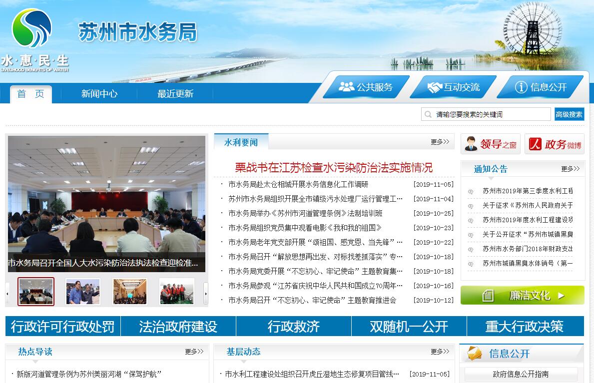 苏州市水务局是苏州市机构改革组建的新部门,为苏州市人民政府工作部门。其主要职责是:(一)贯彻执行党和国家有关水务方面的方针政策、法律法规以及省委省政府、市委市政府决策部署并监督实施。拟订水务发展重大政策。组织起草全市有关地方性法规和规章草案。(二)编制全市水资源综合规划和省、市确定的重要江河湖泊区域综合规划、防洪规划等重大水利规划。编制全市水域及其岸线利用、江河湖泊治理和河口控制等专业(项)规划。对有关国民经济和社会发展规划、城乡总体规划、国土空间规划中的涉水内容提出意见建议。组织开展重大建设项目的水资源、防洪、水土保持论证评价工作。(三)负责拟订水务固定资产投资计划和资金监督管理。按规定权限审批、核准规划内和年度计划规模内固定资产投资项目。提出省市水务资金安排建议并负责项目实施的监督管理。研究提出有关水务的价格、收费、信贷、财务等方面的意见。(四)负责保障水资源的合理开发利用。负责生活、生产经营和生态环境用水的统筹和保障。组织实施最严格水资源管理制度,实施水资源的统一监督管理,拟订全市和跨区域水中长期供求规划、水量分配方案并监督实施。负责重要区域以及重大调水工程的水资源调度。组织实施取水(含矿泉水、地热水)许可、水资源论证和水资源有偿使用制度,组织实施水资源费等规费的征收工作。(五)负责水资源保护工作,组织编制并实施水资源保护规划。负责饮用水水源保护有关工作,按规定核准饮用水源地设置。指导地下水开发利用和地下水资源管理保护。组织指导地下水超采区综合治理。对江河湖泊和地下水实施监测,发布水资源信息、情报预报和水资源公报。按规定组织开展水资源调查评价和水资源承载能力监测预警工作。(六)指导全市水环境治理和水生态修复工作。组织编制全市水生态修复规划并组织实施。组织实施市级水环境治理工作。指导蓝藻打捞工作。指导河湖水域及其岸线的管理、保护和综合利用,指导区域骨干河道、湖泊的治理、开发与保护。指导河湖水生态保护与修复、河湖生态流量水量管理以及河湖水系连通工作。(七)负责节约用水工作,拟订节约用水政策,组织编制节约用水规划、拟订行业用水定额标准并监督实施。组织实施用水总量控制等管理制度,指导和推动节水型城市、节水型社会建设工作。组织实施建设项目节水设施审核和验收,组织实施用水审计及用水超计划、超定额加价制度。(八)负责全市供水行业监管和饮水安全,组织编制全市供水规划。负责全市供水水质监督管理工作,参与供水水价规划和水价调整工作。负责市级供水工程建设和供水处理设施的运行监管。指导全市供水特许经营管理。(九)负责全市排水行业管理。组织编制全市排水规划。负责全市生活污水治理行业管理工作,指导全市排水特许经营管理。指导全市排水防涝工作。组织实施排水许可制度。负责市级排水工程建设和污水处理设施的运行监管。参与污水处理费规划和价格调整工作,依法收取污水处理费等规费。(十)组织实施重点水务工程建设和水务建设的行业监管和质量安全监督。组织指导水利基础设施网络建设,组织实施具有控制性的跨区域的重要水务工程建设。指导全市水务建设市场的监督管理。编制重点水务基本建设项目建议书和可行性报告。指导全市水务工程建设质量安全监督工作。负责独立建设的水务工程质量安全监管。配合做好重点水务工程建设项目稽察工作。依法负责水务行业安全生产工作。(十一)指导水利设施的管理与保护。组织编制水利工程运行调度规程,指导泵站、堤防、水闸等水利工程的运行管理与确权划界。负责市级水利工程的运行管理。(十二)负责全市农村水利和水土保持工作。指导全市圩区建设、节水灌溉、农村河道疏浚整治和生态河道等工程建设与管理工作。指导农村水利改革创新和社会化服务体系建设。指导全市水土保持工作。组织编制水土保持规划并监督实施,指导水土流失综合防治、监测预报并定期公告。指导生产建设项目水土保持监督管理工作。指导市重点水土保持建设项目的实施。(十三)负责水旱灾害防御及水量调度工作,组织编制洪水干旱灾害防治规划和防护标准并指导实施。承担水情旱情监测预警工作。组织编制重要江河湖泊和重要水工程的防御洪水抗御旱灾调度及应急水量调度方案,按程序报批并组织实施。承担防御洪水应急抢险的技术支撑工作。负责台风防御期间重要水工程调度工作。(十四)配合有关部门做好重大水利工程移民安置相关工作。(十五)组织水务科学技术研究和推广。拟订全市水务行业技术标准、规程规范并监督实施。指导水务信息化和水务行业对外技术合作与交流工作。(十六)负责重大涉水违法事件的查处,协调和仲裁跨市、区的水事矛盾纠纷。指导水务行政许可、水政监察、水行政执法和普法宣传工作。负责全市河湖采砂的统一管理和监督检查。(十七)承担苏州市全面深化河长制改革工作领导小组日常工作。(十八)完成市委、市政府交办的其他任务。