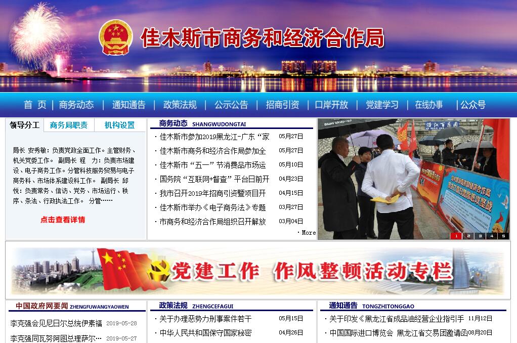 根据《佳木斯市人民政府职能转变和机构改革方案》,设立佳木斯市商务和经济合作局(佳木斯市口岸管理委员会办公室),为市政府工作部门。其主要职责是:(一)贯彻执行国家和省有关国内外贸易、利用外资、对外开放、招商引资及国际经济合作等方面的法律、法规和规章;研究经济全球化、区域经济合作、现代流通方式的发展趋势和流通体制改革并提出建议;拟订全市招商引资政策并组织实施。(二)负责推进全市商贸流通产业结构调整,指导流通企业改革、商贸服务业和社区商业发展,促进商贸中小企业发展,推动流通标准化和连锁经营、商业特许经营、物流配送、电子商务等现代流通方式的发展;负责制定和实施再生资源回收产业政策、回收标准和回收行业发展规划。(三)拟订全市国内贸易发展规划,促进城乡市场发展,研究提出引导市内外资金投向市场体系建设的政策措施;指导全市大宗产品批发市场规划和城市商业网点规划、商业体系建设工作;推进农村市场体系建设,组织实施农村现代流通网络工程。(四)负责牵头协调全市整顿和规范市场经济秩序工作,拟订规范市场运行、流通秩序的政策措施;依法对经营者集中行为进行反垄断审查,指导企业在国外的反垄断应诉工作;推动全市商务领域信用建设,指导商业信用销售,建立市场诚信公共服务平台;按有关规定对特殊流通行业进行监督管理。(五)承担组织实施全市重要消费品市场调控和重要生产资料流通管理工作;建立健全生活必需品市场供应应急管理机制;监测分析全市市场运行和商品供求状况,调查分析商品价格信息,进行预测预警和信息引导;按分工负责重要消费品储备管理和市场调控工作;按有关规定对成品油、煤炭等主要生活用品、报废车拆解、拍卖、典当、直销、服务、理烫发等行业进行监督管理。(六)贯彻实施国家进出口商品、加工贸易管理办法和进出口管理商品、技术目录;拟订促进全市外贸增长方式转变的政策措施;会同有关部门协调大宗进出口商品,指导贸易促进活动和外贸促进体系建设。(七)贯彻执行国家和省对外技术贸易、进出口管制以及鼓励技术和成套设备进出口的贸易政策;推进全市进出口贸易标准化工作;依法监督全市技术引进、设备进口、国家限制出口技术工作;负责防扩散等与国家安全相关的进出口许可证申报工作。(八)牵头拟订全市服务贸易发展规划并组织实施;会同有关部门拟订促进服务出口和服务外包发展的规划政策并组织实施,推动全市服务外包平台建设。(九)贯彻执行国家和省双边(含区域、自由贸易区)经贸合作战略和政策;牵头组织参加国际经贸活动,参与多双边经贸谈判并处理经贸关系中的相关事务;负责全市对外经济贸易协调工作。(十)指导和管理全市利用外资工作;负责权限内的外商投资企业审批;负责外商投资情况的统计、分析和外商投资企业年度运营情况网上申报;负责认定外来投资企业及外来投资项目的备案工作,依法监督检查外商企业执行有关法律法规、合同章程的情况;负责组织、协调有关部门做好外来投资企业的服务工作。(十一)负责全市对外援助项目的审核申报工作;负责管理多双边经贸对我市的无偿援助和赠款(不含财政合作项下外国政府及国际金融组织对我市赠款)等发展合作业务。(十二)指导市际间区域合作工作;负责区域经济合作情况的统计、分析;配合、协助有关部门做好外来投资企业的服务; 协助处理外来投资企业的投诉。(十三)负责全市对外经济合作工作;依法管理和监督对外承包工程、对外劳务合作等;贯彻执行中国公民出境就业管理政策;牵头外派劳务和境外就业人员的权益保护工作。(十四)拟订与毗邻国家经贸发展规划、政策和措施,指导管理对俄边境小额贸易、边民互市贸易;负责我市与俄罗斯、东北亚地区多边、双边经贸会议活动的组织与衔接工作。(十五)贯彻执行国家和省制定的对香港、澳门特别行政区和台湾地区的经贸规划、政策,参与组织与香港、澳门特别行政区有关部门和台湾地区授权机构进行经贸磋商洽谈活动。(十六)贯彻执行国家和省有关口岸工作的方针、政策和各项规定并制定实施细则。负责全市水、陆、空口岸工作;组织口岸的集疏运工作;督促检查口岸查验部门认真履行职责和规定;协调口岸各单位之间的工作;检查督促口岸规划建设和技术改造配套工作的实施;按照国家关于口岸开放的政策规定,对我市各类口岸的开放、关闭提出具体意见。(十七)拟订全市招商引资的中长期规划和年度目标并组织实施;负责制定全市招商引资工作目标并负责检查、督办、考核;指导县(市)、区招商引资工作。(十八)负责组织实施全市境内外重大招商引资活动;负责对国内外经济技术合作交流代表团的联络、协调、接待、洽谈等工作;负责我市与国内友好城市的缔结及日常管理联络工作。(十九)负责国内外来我市举办各类招商引资活动的联络和服务工作;承办国内、外经济合作代表团来访的联络、协调和接待工作;承办市政府招商引资代表团出访的联络、洽谈等有关工作;负责与非政府组织、投融资机构、商会、协会的联系联络工作;负责区域合作交流情况的统计、分析。(二十)负责市招商引资网站的建设、管理与维护工作;负责招商引资信息库和客户资源库建设,发布招商引资项目和信息;研究国内外