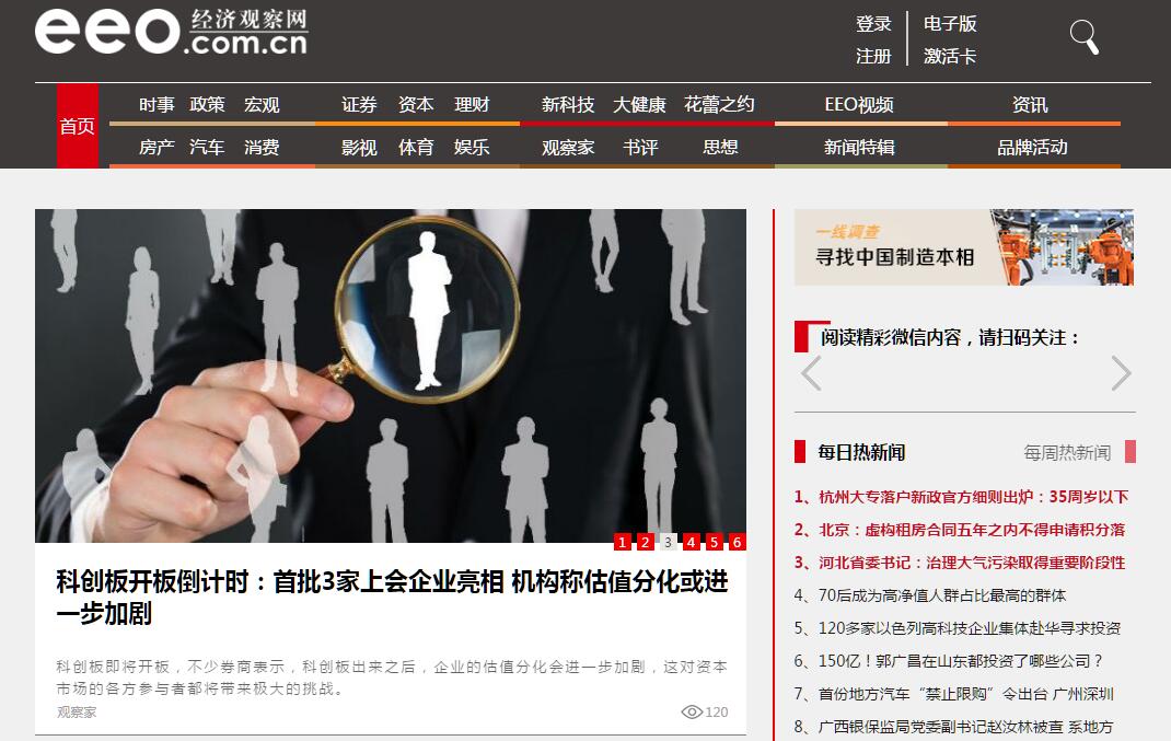 | 网站简介: 《经济观察报》以理性、建设性为基本价值观,服务于中国主流商业人群,目前是中国最具影响力的财经商业信息提供者和媒体平台之一。以客观、独到、深度、权威的高品质报道和分析,为商业人群决策提供最有价值的帮助。作为《经济观察报》旗下新媒体平台——经济观察网,拥有专业编辑力量,为用户提供及时的财经新闻,独到的财经评论。经济观察网提供多种移动平台资讯产品:电子报、iPad版、iPhone版、Android版、经济观察网官方微博、经济观察网官方微信、新闻客户端,随时随地为用户提供有价值的财经资讯。 |