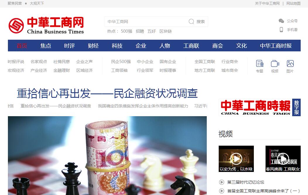| 网站简介: 《中华工商时报》1989年10月6日在北京创刊,海内外公开发行。《中华工商时报》是党的统一战线重要舆论阵地、中国民营经济主流媒体、全国工商联机关报。领航民营经济,护航民营企业,导航民营人物,努力打造政治坚定、特色鲜明、充满活力的中国民营经济权威新型主流媒体。《中华工商时报》由新闻版块+周刊版块构成。新闻版块包括:时政要闻、深度报道、年度人物、理论研究、评论博览、天下财经;周刊版块包括:工商联周刊、商会周刊、光彩周刊、财经周刊、成长企业周刊、经济地理周刊等。目前,中华工商时报社正推进传统新闻媒体与网络的融合,走向全媒体之路。报纸、杂志、网站、微信公众号、电子屏、中国民营经济舆情报告及蓝皮书等全媒体形态格局初现。在全媒体发展模式下,中华工商时报社平台建设更上一层楼:中华工商时报社理事会、中国城市总商会发展峰会、中国民企传媒联盟、未来工商领袖论坛、中国民营经济年会等品牌活动,已经成为报网融合发展的重要支撑。 |
