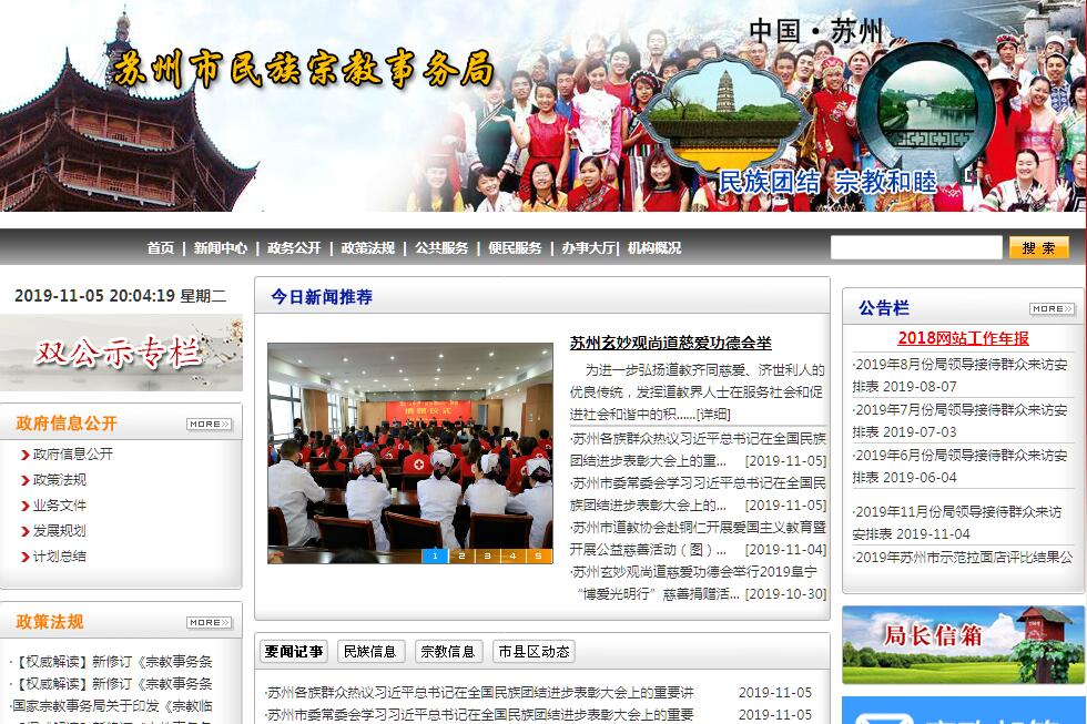 苏州市民族宗教事务局,为市政府工作部门,正处级建制。其主要职责是:(一)贯彻执行党和国家有关民族宗教工作的方针政策和法律、法规;开展民族宗教理论、政策和民族宗教问题的调查研究,提出我市有关民族宗教工作的政策建议。(二)会同有关部门做好民族宗教政策和法律、法规的宣传教育工作;督促检查民族宗教政策和法律、法规的执行情况。(三)依法保护少数民族公民的合法权益;组织和承办全市民族团结进步表彰活动;会同有关部门做好培养选拔少数民族干部工作;组织接待来我市参观、学习、考察的少数民族团队。(四)会同有关部门做好新疆民族班的管理工作;会同有关部门做好少数民族扶贫工作;会同有关部门做好清真饮食网点建设工作;落实国家对民族用品定点生产企业的有关优惠政策。(五)依法履行宗教事务管理职责,依法保护公民宗教信仰自由和正常的宗教活动。(六)指导民族宗教团体依法依章开展活动;支持民族宗教团体加强自身建设;协助办理民族宗教团体需由政府解决或协调的有关事宜。(七)承担市政府交办的为发展苏州文化旅游城市服务的有关工作;协调宗教活动场所承办与发展苏州文化旅游事业有关的事宜。(八)指导全市民族宗教事务部门依法履行管理职责;协调处理民族宗教事务的重大事项;防范利用宗教进行的非法、违法活动;抵御境外利用宗教进行的渗透活动。(九)受省宗教事务局委托,协助做好部分宗教院校的有关管理工作。(十)负责宗教方面的外事归口管理工作;指导宗教界开展对外以及对港澳台的宗教交往活动。(十一)负责所属事业单位的有关管理工作。(十二)承办市政府交办的其它事项。