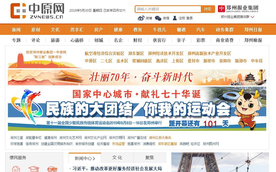 中原网成立于1998年,是河南省最早的新闻网站之一,初期为《郑州晚报》的电子版,2002年定名为中原新闻网,2006年改名为中原网,2007年10月,由国务院新闻办公室批准为国家一类新闻网站,2008年进入国内新闻网站50强行列,2010年以来位居20强以内。近年来,中原网由小变大,由弱变强,从默默无闻到业内知名、网民喜爱,目前拥有近百人的团队、100多台服务器、300平方米演播大厅,开设新闻、论坛、“心通桥”、郑州通等栏目30多个,每天实时更新新闻近3000条,舆论引导能力不断增强,影响力不断提升,实现了自身的跨越发展,取得了社会效益和经济效益双丰收。2013年,“心通桥”栏目荣获中国新闻奖一等奖,成为当年唯一获此殊荣的地方新闻网站,填补了郑州报业的空白。中原网已经发展成为河南省重要的网上舆论阵地,全球华人了解郑州的主要网络窗口。中原网还紧跟移动互联的步伐,着重打造中原网移动互联网全媒体矩阵,推出了“云中原”手机客户端、“掌上中原”微信及中原网官方微博等移动多媒体平台。中原网官方微博影响力已经占据河南媒体类网站第一位,“掌上中原”微信平台也已经成为河南生活服务类第一微信平台。今后,中原网将牢记媒体的社会责任,埋头苦干,锐意进取,优化网络结构,提升用户体验,全面提升网上舆论工作水平,做大做强网上舆论阵地,牢牢掌握网上舆论工作的领导权、管理权、话语权,加强和改进网络正面宣传和舆论引导,积极传播网上正能量,打造开放、健康、有序的网络平台,为广大用户提供更好的服务,为广大网友提供更方便、快捷的交流空间。