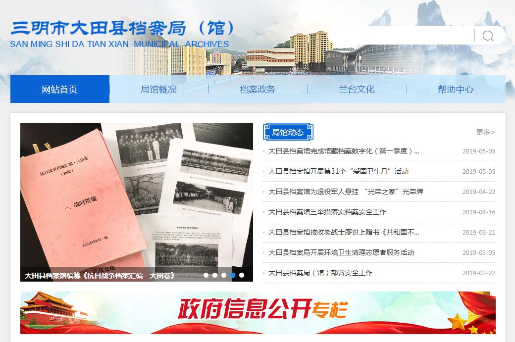 | 网站简介: 大田县档案局(馆)1959年8月18日成立,中共大田县委办主任陈文炳兼任馆长。大田县档案局于1986年7月1日成立,局(馆)合署办公,是中共大田县委、县政府的直属机构。作为县级档案行政管理部门,大田县档案局主管本县区域内的档案事业,贯彻执行有关法律、法规和国家有关方针政策;制定全县档案事业发展计划和档案工作规章制度,并组织实施;对县域内的机关、团体、企业事业单位和其他组织的档案工作实行监督和指导,依法查处档案违法行为;组织、指导全县档案理论与科学技术研究、档案宣传与档案教育、档案工作人员培训。大田县档案馆是集中保存、管理全县档案的文化事业机构。负责收集和接收本馆保管范围内对国家和社会有保存价值的档案;对所保存的档案严格按照规定整理和保管;采取各种形式开发档案资源,为社会利用档案资源提供服务。1997年11月,县档案馆被中共大田县委宣传部列为“爱国主义教育基地”;1999年,通过“福建省三级档案馆”评定。 |