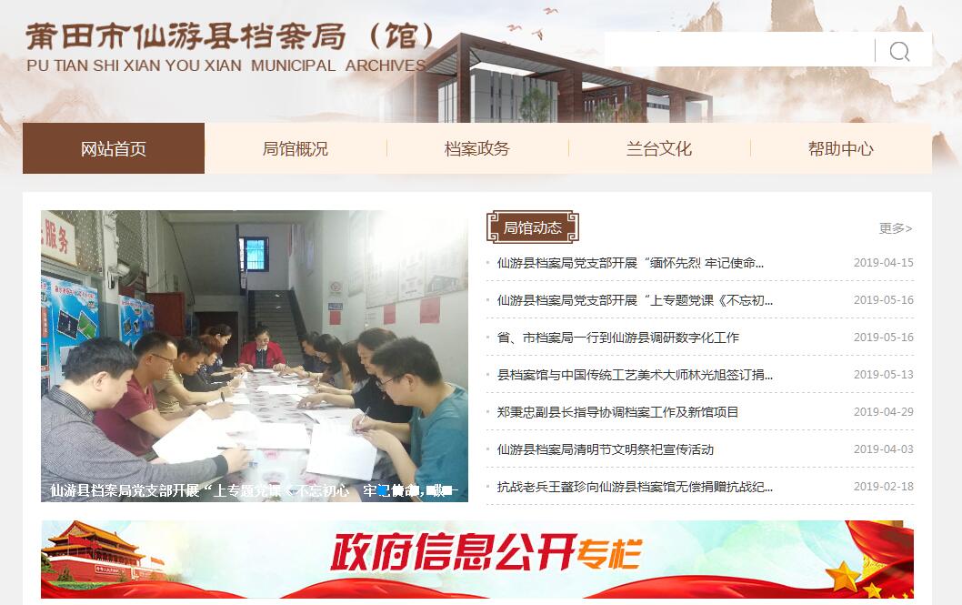 | 网站简介: 仙游县档案局(馆)是国家综合性档案馆,是中共仙游县委、县人民政府直属的文化事业单位,是集中统一管理仙游县各单位、各类档案和有关资料的基地,是利用档案资料为社会主义现代化建设服务的史料中心。1986年9月8日,县委、县人民政府调整档案工作领导体制决定成立县档案局,其性质既是党的机构,又是政府的机构,列入政府编制序列;同时明确县档案馆是同级党委、政府的直属事业机构,与县档案局合署办公,两块牌子,一套班子。目前县档案馆的主要职能是负责接收、收集、整理、保管和提供利用分管范围内的档案;并加强数据库建设,逐步实现档案的传统的手工式的检索向现代的机检式检索的转化;县档案局未成立以前,档案馆实际上还行使档案管理部门的职能,对全县档案事业的发展进行统筹规划、组织协调并实行检查、监督和指导。 |