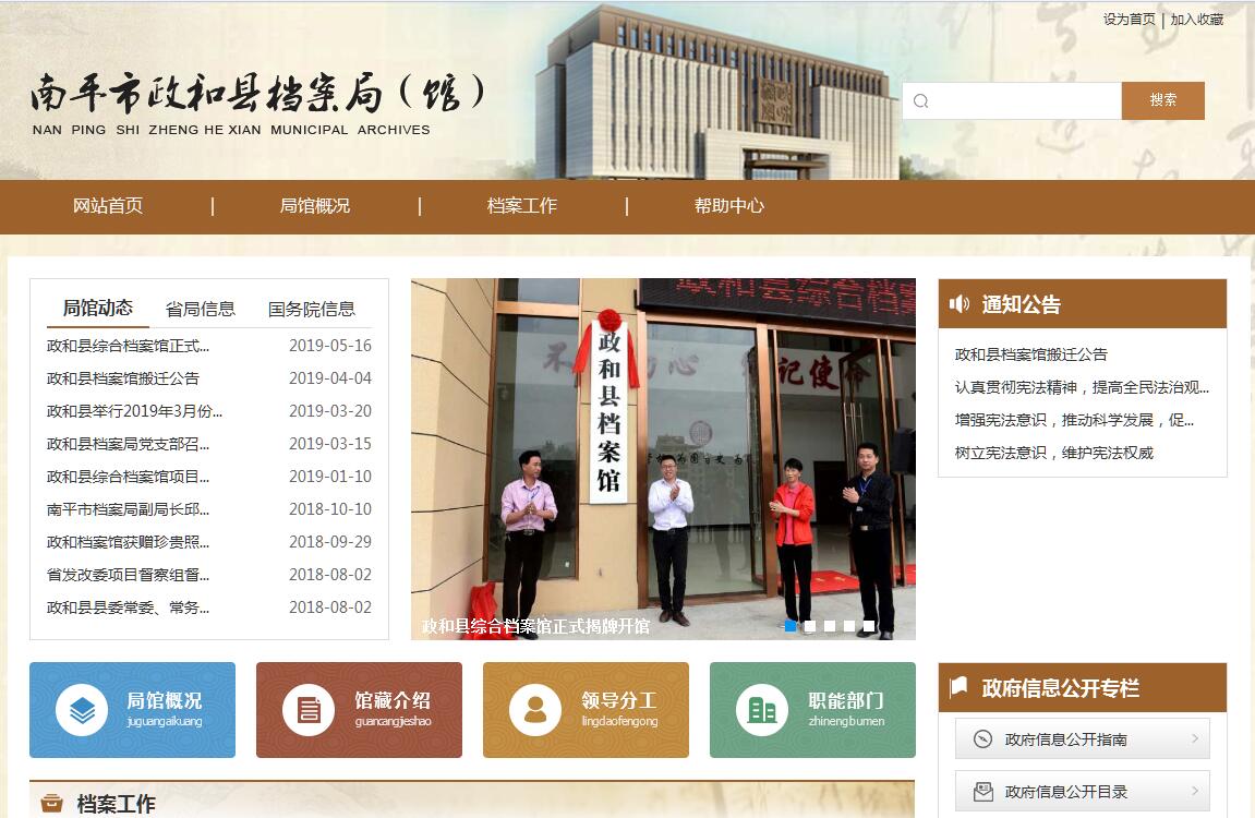 | 网站简介: 政和县档案局(馆)位于政和城关元峰路63号,是中共政和县委直属的文化事业机构,它集中保管政和县各个历.史时期的党、政机关、群众团体和部分企、事业单位的各种门类、各种载体档案资料的国家综合性档案馆。 |