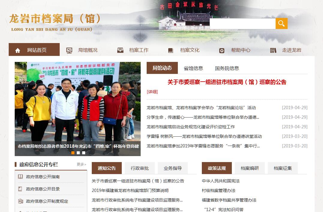 龙岩市档案局(馆)位于新罗区军民路41号(原市委机关大院内),是参照公务员法管理的事业单位,履行全市档案事业行政管理和档案保管利用两种职能,由中共龙岩市委直接管理,规格为正处级,现设一室三科,分别为办公室、监督指导科、保管利用科、编研技术科,核定编制17人。龙岩市档案馆是保管龙岩市直党政机关、人民团体、国有企业、事业单位各种门类、各种载体和形式的档案、资料的国家综合档案馆。现有馆藏档案、资料20多万卷(册)、240多个全宗,主要有明、清、民国、革命历史档案和建国后档案,主要种类有文书、科技、会计、诉讼、涉外婚姻、学籍、企业退休人员人事等各类档案,以及照片、录音、录像、光盘、印章等各种载体档案。 近年来,龙岩市档案局(馆)深入贯彻落实市委、市政府决策部署和国家、省档案局工作要求,认真履职、主动作为,不断提升档案服务能力和依法治档水平,各项工作取得明显成效。市档案局先后被国家人力资源部、国家档案局授予“全国档案系统先进集体”、被福建省档案局、福建省公务员局连续两届授予“福建省档案系统先进集体”、被中共龙岩市委、龙岩市人民政府授予第十一届、十二届“市级文明单位”;2015、2016年被龙岩市依法治市领导小组先后授予“全市依法治市先进集体”、“全市法治宣传教育先进单位”。2011年市档案馆晋升为国家一级档案馆;被福建省教育厅、福建省档案局授予“福建省中小学档案教育社会实践基地”。市档案局支部被中共龙岩市委授予“先进基层党组织”,被市直党工委授予“五个好党支部”。市档案学会2012、2014年连续被省档案学会评为全省档案学会工作先进集体,2014年被市科协授予“全市科协系统先进集体”和“四星级学会”,2015年12月被市民政局授予“全市优秀社会组织”称号。市数字档案馆被福建省档案局确定为全省数字化建设试点。