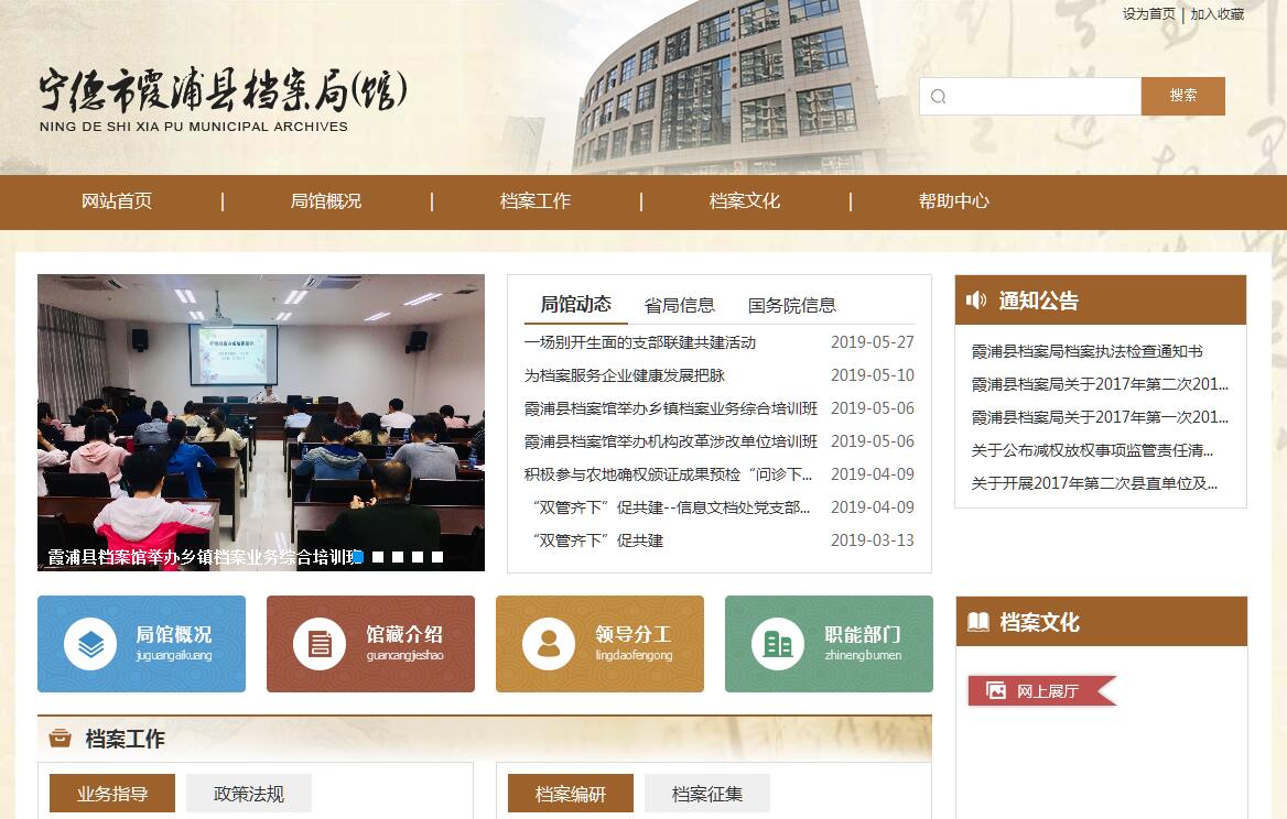 霞浦县档案馆成立于1958年,档案局成立于1986年,实行两块牌子,一套人马,合署办公,编制10人。原档案馆始建于1972年,总面积1173平方米,其中档案库房12间,480平方米,属C级危房。2011年,霞浦县综合档案馆项目作为县委、县政府列入九大项基础综合设施项目之一,于当年12月开工,2013年1月主体工程竣工,同县博物馆、图书馆、科技馆、城市规划展示馆、大剧院、青少年活动中心、职工之家、妇女儿童活动中心等一起建设,简称为霞浦九大馆。新馆按照县级综合档案馆“五大功能”( 档案安全保管基地、爱国主义教育基地、档案利用中心、政府信息查阅中心和电子文件中心)要求,努力创建国家二级综合档案馆。新馆共五层(包括地下室)总面积3736平方米,其中库房1303平方米。经过历时四年的新馆工程建设,于2015年10月23日搬迁新馆办公,现库房安装了恒温恒湿精密空调八台;新增档案密集架376.3m³,满足新移交档案5至10年存放;安装了高压细水雾灭火控制系统,监控报警等设备,为档案安全使用和消防安全提供了有力保障。“数据档案馆”的基础设备及操作系统,为档案信息化工作提供了良好的条件,使档案服务窗口的信息公开和今后延伸和拓展档案信息服务获得有力“抓手”。这集先进设施、消防安全和标准馆库为一体,彰显科技、人文和休闲为一处具有地标式的文化建筑,展现出崭新的精神风貌,为进一步发挥档案馆的社会服务功能,推进全县的档案工作起到积极有为的作用。建馆以来,档案局(馆)通过各种形式和渠道,积极征集和接收文书、土改清册、会计、公证、林权三定、婚姻、土地承包、干部人头和声像等档案。目前,馆藏档案有161个全宗,61041卷(册),馆藏量居宁德市县级前列,最早的有清乾隆15年(公元1751年)的地契,其中4198卷的民国档案和4卷革命历史档案成为珍贵的历史档案。为能进一步彰显档案文化内涵和人文价值,借新馆起用之时,我们荟萃了313幅不同历史时期的档案照片,制作三十二个宣传展牌,从一层走廊往二层楼梯,环绕墙壁挂展,在清柔灯光映现下,呈显出档案特有的文化氛围。由于她们分类不同,表达的文化内涵各异,从某种侧面上浓缩我县历史的文化变迁,具有很强的观赏性、可读性,沉浸其间让人回味和思考。这几年,我们特别注重特色档案的征集。我们在注重征集习近平等领导的特色档案和25幅照片的同时,去年,在纪念“二战” 革命战争70周年前夕,我们派人到省档案局,以拍照、复印等形式征集到珍贵的《霞浦民报》(1947年),《霞浦导报》(民国36年),敌人罪行调查表(民国34年),《闽东概况》(原版)等报刊书籍和照片70多张,这些难得的档案和资料十分珍贵。这两年,我们还和博物馆联手,跖出霞浦著名的历史名人题词、古碑、题匾等拓片40幅。同时收集到在空海入唐登陆1186年 (即1994年之际)在霞浦书法展的书法名家如赵朴初、游寿、潘主兰、郑乃珖、周沧米等先生作品78幅。今年,征集到霞浦首届民间春晚《回家过年》的全程录像;《霞浦长廊》、《霞浦历史名人访谈》录像;南宋名宦王伯大的家《“博大”的留余铭》电子录像光盘;与厦大历史系联合挖掘编研红土地历史档案,这些都不断丰富了馆藏,注重从个性和特色上提升档案文化价值。