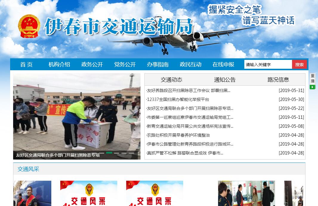 伊春市交通运输局主要职责:(一)承担涉及综合运输体系的规划协调工作,会同有关部门组织编制综合运输体系规划,指导交通运输枢纽和有关管理工作。(二)贯彻执行国家公路、水路行业发展战略、方针政策和法律法规;组织拟订公路、水路行业政策、规划和标准并监督实施;参与拟订物流业发展战略和规划,拟订有关政策和标准并监督实施;指导公路、水路行业有关体制改革工作。(三)承担道路、水路运输市场监督责任。贯彻执行国家和省道路、水路运输有关政策、准入制度、技术标准和运管规范并监督实施;指导城乡客运及有关设施规划和管理工作;指导出租车行业管理工作;指导道路货物搬运装卸、包装托运市场、城市经营性停车场管理工作;负责涉外口岸运输、国际和国境河流运输及航道有关管理工作。(四)负责提出公路、水路固定资产投资规模和方向、财政性资金安排建议;按市政府规定权限提出市政府规划内和年度计划规模内交通固定资产投资项目审查意见;贯彻执行公路、水路有关规费政策,提出有关财政、土地、价格等政策建议;负责审计、监督直属单位财务管理和国有资产的保值增值。(五)承担公路、水路建设市场监管责任。贯彻执行国家和省公路、水路工程建设相关政策、制度和技术标准并监督实施;承担公路、水路有关重点工程建设质量、安全生产监督管理工作;负责港口规划和岸线使用管理工作;指导和管理公路工程勘察设计工作。(六)组织实施公路、水路交通重点工程建设;指导公路、水路交通运输基础设施建设、管理和维护,承担有关交通重要设施的管理和维护;组织实施战备公路、水路建设和维护;承担国防动员有关工作。(七)指导公路、水路行业安全生产和应急管理工作。依法组织或参与事故调查处理及水上救助打捞工作;按规定组织协调省和市级重点物资和紧急客货运输;负责全市干线路网运行监测和协调工作。(八)指导交通运输信息化建设,监测分析运行情况,开展相关统计工作,发布有关信息;指导公路、水路行业环境保护和节能减排工作;负责公路、水路对外合作与外事工作。(九)负责道路和水路运输行政管理、公路行政管理、航道行政管理、港口行政管理工作。(十)承办市政府交办的其它事项。
