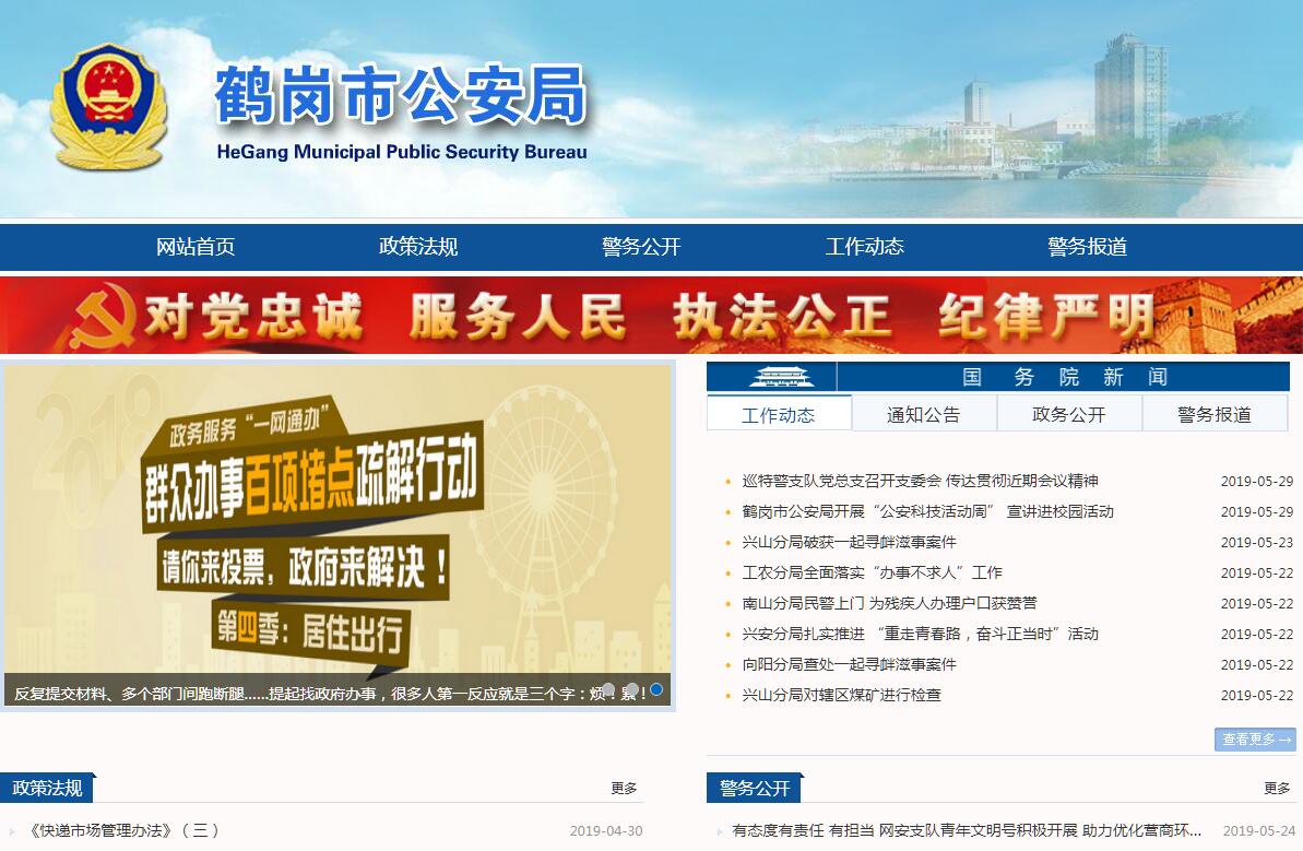 鹤岗市公安局主要职责:(一)贯彻执行市委、市政府及上级公安机关关于公安工作的方针、政策、法规、规章;部署、指导、监督、检查全市公安工作。(二)掌握、分析、研究全市影响社会稳定情况和社会治安状况,为市委、市政府、省公安厅提供社会治安方面的重要信息,并制定对策,组织实施。负责全市公安侦查工作,侦查、调查和处理重大案件、危害社会治安的重大治安事故和骚乱。(四)负责全市公安机关依法管理社会治安、户籍、居民身份证、危险物品和特种行业等工作。负责全市公安机关的执法部门依法查处危害社会治安秩序的行为。(五)依法对出、入境和外国人在中国境内居留、行的有关管理工作。(六)组织、指导、监督全市边防治安管理工作和消防工作,指导、监督全市消防工作。(七)指导、监督、管理全市道路交通安全,维护交通秩序以及机动车辆、驾驶员管理。(八)负责全市公安机关对国家机关、社会团体、企事业单位和重点建设工程的治安保卫工作以及群众性治安保卫组织的治安防范工作。(九)指导、监督全市公共信息网络的安全监察工作。(十)负责全市公安机关依法承担的执行刑罚和监督,指导监督看守所、行政拘留所、强制戒毒所的管理建设工作。(十一)承办市劳动教养委员会的收容教养审批工作。(十二)组织实施对来我市的重要领导人和外宾的安全警卫工作。(十三)负责全市公安机关科学技术工作规划和组织实施全市公安信息技术、刑事技术和行动技术建设。(十四)负责公安机关的装备、被装配备、警务保障工作。(十五)开展周边国家警方的交往与业务合作,履行国际条约和合作协议。(十六)按管理权限,统一管理全市公安边防、消防部队建设工作。(十七)负责全市公安机关人员培训、教育和公安宣传工作,在规定权限范围内管理干部。(十八)负责全市公安队伍监督管理、督察工作。按规定权限实施对干部的监督,查处或督办公安队伍的违纪案件。(十九)承办上级机关交办的其他工作。