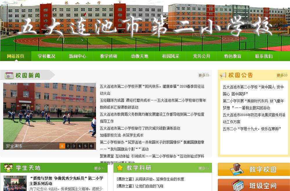 五大连池市第二小学创办于1945年,重建于2002年,扩建于2010年。位于五大连池市青山镇二道街南、迎宾路西侧。在市委市政府的大力支持和市教育局的正确领导下,2014年10月晋升为“省级标准化先进学校”。校园占地面积18000平方米,建筑面积6732平方米。现有29个教学班,学生1269人。学校现有教职工71人,拥有高级教师21人,教师学历达标率100%,其中本科学历50人。下设附属幼儿园1个。学校教育设施完备,功能室齐全,全部实现班班通。学校坚持走“以人为本、科研兴校、强化管理、创新发展”的办学道路,确立了“让学生体验成功的快乐,让教师感受工作的幸福,让家长了解发展的教育”的办学理念,广大教职工发扬“民主合作、奋进创新”的工作作风,认真践行和丰富着学校办学理念,积极“构建成长文化,实施体验教育”的办学思想体系。在全面实施素质教育,培养学生核心素养的过程中,第二小学按照市教育局“一校一品”的特色办学要求,在传承学校管理的基础上,学校以艺体工作为切入点,确立了以足球立特色,以足球创品牌,以足球促发展的工作思路,积极开展校园足球联赛和校园足球文化节等形式多样的足球主题活动,做到以球润德、以球健体、以球启智、以球育美,不断丰富足球特色学校的文化内涵,2015年成为全国首批校园足球特色学校。在坚持立德树人,深入践行社会主义核心价值观的同时,注重学生兴趣和特长的培养,利用每周二、四最后一节课,坚持不懈的开展实践类、艺体类、人文类等“兴趣社团”活动。成立了五大连池市第一家少儿合唱团,在全市小学一、二年级率先开设围棋课程,是五大连池市第一家黑龙江省心理健康教育特色学校。六年来,学校多次承办市本级的教育教学工作推进会现场会,学校办学声誉、办学品质显著提高,受到社会各界的广泛关注和认可。学校先后被授予:全国体育工作示范校、国家级亿万青少年冬季长跑优秀学校、全国语文教改示范校、黑龙江省足球传统项目学校、黑龙江省阳光美德学校、地级师德建设先进集体、卫生先进单位、教学质量先进集体、优秀家长学校、红十会工作示范标兵单位、预防未成年人零犯罪工作先进集体、教育信息化建设先进集体、三育人先进集体、市级先进基层党组织、市级教育教学先进集体等七十多项荣誉。好风凭借力,扬帆正当时,我们坚信困难与希望同在,机遇与挑战并存,在市委、市政府的大力支持和市教育局的正确领导下,二小人将凝心聚力谋发展,筑梦成长谱新篇。
