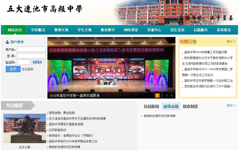 五大连池市高级中学是一所普通高中学校,地处黑龙江省五大连池市青山镇,始建于1978年,学校占地8.3万平方米,现有教学楼10558平方米,食堂、学生公寓楼8173平方米,有完备的各功能室,现有30个教学班,在校生1700人,教职工155人。配备了理化生实验室、语言学习室、技术室、多功能教室、教师阅览室、学生电子阅览室、音体美室、微机室等;建有标准的环形田径场、篮球场、排球场和健身路径等场地,实现了班班通工程,藏书5万册。走进校园,名人名言、警示牌引人注目。教室里的特色板块展示、读书角和教室外墙的专栏交相呼应,充分发挥了校园内育人无处不在的作用,实现了内外和谐统一,使人的情感得到潜移默化的熏陶、激励、升华,使师生整体素质得到优化。 高级中学,实现了区域集中办学,在上级党政和教育部门的正确领导下,高级中学和谐发展、规范管理、狠抓质量,内强素质、外树形象,办学水平有了质的飞跃。高级中学全面贯彻党的教育方针,坚持“全程育人、全面育人和全方位育人”的原则。在全面实施素质教育的过程中,学校实施了“树先进理念、上一流设施、塑一流师资、抓一流管理、创一流服务、争一流质量、建一流和谐校园的发展战略。认真落实“三个一切”、“多育并重” 的办学理念,学校一切工作以家长的信任和社会的满意度、争创和谐校园作为衡量的标准,积极营造“追求科学、崇德、尚学、笃行”的良好氛围,形成了“自强厚德、止于至善的校训,严谨勤学的校风,敬业创新的教风,刻苦善思的学风”。努力做到“以学校的发展为中心,以教师的发展为基础,以学校的发展为目的。坚持常规为根,质量为本,德育为先、改革为突破口”,实现“立强校、提声誉、谋发展”的办学目标。培养具有初步的创新精神和实践能力的合格毕业生。在市委、市政府及教育局的正确领导和关心支持下,学校在办学规模、办学条件上逐年扩大,不仅逐步规范了学校的办学行为,而且实现了招生质量和升学质量的同步提高,在杨林同志的领导下,经过师生的共同努力, 2013年高考文理科(艺体生除外)一表上线共47人,其中理科44人、文科3人,比2012年一表线上线人数多23人(2012年一表上线共24人)。文理科二表A以上上线人数(艺术、体育除外)共计166人,其中理科124人,文科42人。理科本校考生韩冰同学取得614分的理科最高分,比2012年本校理科最高分考生杨帆572分高出42分。文科考生张岩总分563分,高出重本线59分。艺体考生上线87人,二表A以上上线总计253人。同年经黑河市人民政府教育督导室批准,高级中学晋升为省级一类学校。 2014年学校一表上线共7人。文理科二表A以上上线人数(艺术、体育除外)共计58人,其中理科45人,文科13人。本校考生唐健宇同学取得612分的理科最高分,成为我市理科高考状元。艺体生上线84人,既二表A上线总人数142人,超额完成学年初教育局下达的高考任务。 2015年成绩更是喜人,2表A以上共上线205人,其中艺体录取109人,重本5人。