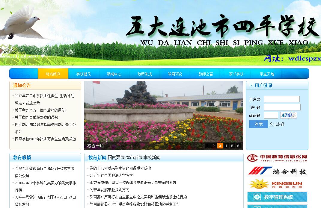 四平中学座落于五大连池市和平镇四平村,地处五大连池西南部,是五大连池市一所普通农村中学,学校占地17000平方米,校舍3000多平方米,现有教职工16人,三个教学班,在校生88人,现有多媒体教室一个,计算机教室一个,物理、生化实验室各一个,德育基地一个,图书室一个,校办幼儿园一所。几年来,四平中学本着“科研兴师、科研兴校、科研兴教”的办学理念,依托“德育为首、教学为主、育人为本”的教育原则,开展多维育人和教学研究活动。全体教师精诚团结、努力工作、克难攻坚,结合本校实际,大胆开拓、勇于创新、锐意进取。在教育科研、特色教育、文体卫生等方面取得了优异成绩。课堂教学以“先学后教”为引领,创造性地提出了“双分教学模式”、“SP教学模式”和“七环节教学模式”;特色教育以学法研究为核心,形成了独具特色的学法研究体系。在文体活动中,充分发挥学生的特长,组建了篮球队、足球队、长跑队等特长运动小组。如今,四平中学本着“德育为首,育人为先”的原则,积极探索课堂教学改革工作,结合当前信息化教育实践,他们提出了“初中课堂教学信息化架构”的教学法研究体系,利用现代化的教育手段和网络信息技术,把信息化、网络化教学融于课堂教学之中,力争用三年时间,形成一套完备的现代化教学体系。