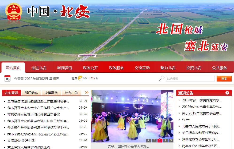 北安,寓意“北方平安”。素有“北国枪城”、“塞北延安”、“书画之乡”之称,是黑龙江省北部区域中心城市和现代化新兴城市。市域面积7149平方公里,总人口48万,其中城镇人口29.7万。辖区内有6个街道办事处、9个乡镇,10个农林牧场、11个部队农场,有农垦北安管理局、省森工总局通北林业局等42个中省黑河市直单位。北安1911年建县,曾两度作为省会城市,1939年为北安省省会驻地,1945年为黑龙江省省会驻地。1945 年12月《黑龙江日报》报社在北安成立,第一张《黑龙江日报》诞生在北安。1960年建市。1991年国务院批准黑龙江省《国土规划纲要》中,把北安规划为二级发展极核的区域性中心城市。2005年,省《城镇体系规划》将北安与哈尔滨、齐齐哈尔、牡丹江、佳木斯列为全省五个综合性城市。2012年,省十一次党代会把北安市确定为现代化新兴城市。2014年,被列为“龙江丝路带”哈绥北黑产业聚集带重要节点城市。2015年,省“十三五”规划把北安确定为重点发展的副中心城市和“哈大齐北绥”西环城市圈的重要节点城市。北安地处黑龙江省北部区域中心,位于齐齐哈尔、绥化、伊春、黑河四个地区的中心地带,是中国内地通往黑河市和俄罗斯及东欧国家旅贸大通道的必经中转站;三条铁路干线、四条高速公路和四条国省级公路在北安交汇,是我国最北部铁路公路交通运输枢纽。北安地处松嫩平原向兴安山地过渡的中间地带,属世界珍贵的三大黑土带之一。市域耕地439万亩,是国家级生态示范市和黑龙江省无公害农产品产地认定与产品认证一体化推进试点市。盛产大豆、玉米、水稻、马铃薯等农作物,是高油脂、高蛋白大豆的重要生产基地和绿色特色作物基地。北安是黑龙江省重要老工业基地,工业门类较为齐全。北安经济开发区被列为省级重点经济开发区,搭建了工业园、黑河(北安)健康产业园、农产品物流园三大产业发展平台,初步形成绿色食品、能源装备制造等特色优势主导产业。北安城市基础设施完善,功能完备,已形成了商贸物流、教育文化、医疗卫生、交通运输、旅游服务和金融信息“六大区域中心”,具有较强的区域集聚辐射能力。商贸物流产业繁荣,已形成粮食、果菜、汽车、农机、建材、轻工六大专业市场,辐射周边300万人口。教育文化体系完善,高中教育和职业技术教育水平位于黑龙江省前列;有万人体育场、现代化体育馆、多功能工人文化宫及红色博物馆群等一批文体场馆。医疗卫生功能完备,市域内有医疗机构32家,千人拥有卫生技术人员和床位超全国平均水平。旅游服务设施健全,是世界地质公园五大连池旅游度假区、小兴安岭森林旅游度假集合区、扎龙湿地生态旅游区的交汇点,是重要的旅游通道城市。金融信息服务齐全,覆盖北安及周边10余个县市区。2015年北安市进入全省十强县行列,在全省十强县综合排名第9位,工业发展、财源建设、民生工作、经济发展四项指标进入全省十强。