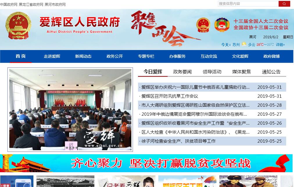 黑河市爱辉区辖区面积14446平方公里,是全国最大的市辖行政区。辖3镇、8乡、4个街道和16个国有农林牧场,总人口19.7万,有汉、满、达斡尔、鄂伦春等26个民族。是我国面向东北亚开放的重要门户,全国首批边境开放城市、国家级生态示范区和大小兴安岭生态功能区限制开发区;清始祖发祥地之一;首任黑龙江将军衙门驻地;达斡尔族南迁过江地;瑷珲—腾冲人口地理分界线北起点。历史悠久。从周王朝起就归中央王朝管辖,1683年清政府于江东设置了首任黑龙江将军衙门,1945年东北光复建立瑷珲县民主政府,1980年国务院批准成立黑河市,1984年时任总书记的胡耀邦同志视察时,提出“南有深圳、北有黑河,南深北黑、比翼齐飞”战略构想,1993年“两撤两建”原黑河市改为爱辉区(县级),原黑河地区改为黑河市(地级)。职责特殊。爱辉区是全国613个含乡镇的市辖区平均面积的16.7倍,乡镇、街道、农林牧场一应俱全,是典型的“区级体制、县级职责”。在省市领导关心关怀下,近年来,发改、财政、商务和卫生职能相继享受“实体县”待遇。区位优越。爱辉区与黑河市同处一地,具有依市兴区、以城带区的独特区位优势。边境线184.3公里,占全市边境线1/2以上。1987年来,第一个恢复了中苏边境贸易,第一个开通了跨国旅游,第一个开展了经济技术合作,第一个开通了国际微波通讯,第一个开展了金融结算业务。幅员辽阔。辖区东西最长距离130公里、南北最大跨距174公里,辖区面积全市第三。耕地面积170万亩,农村人均耕地29.8亩,是重要的商品粮和大豆生产基地。资源富集。发现矿藏69种,探明煤炭储量11亿吨、黄金储量80吨。年均风速6—9米/秒,可利用小时达2500小时以上,风力发电总装机45万千瓦以上。有大小河流97条,湖泊180余个,水能理论蕴藏量年均38.7万千瓦。物种丰富。地跨大小兴安岭,特殊的地理位置和气候条件,造就了动植物资源的多样性,有红松、都柿等野生植物360余种,有紫貂、棕熊等野生动物80余种。生态良好。林业经营总面积118万公顷,是全省最大的地方国有林区,占全省的1/5、全市的1/3。森林覆盖率70.85%,居全市第一。有国家级自然保护区2个、省级自然保护区和湿地公园各1个。全年优良天气350天以上。文旅相映。拥有“瑷珲历史、中俄界江、少数民族、知青垦荒”四大文化,3A级以上景区8个,全市最多。瑷珲古城、红河谷国际滑雪场、新生鄂伦春民俗景区、胜山国家级自然保护区等景区景点别具一格。过去五年,爱辉区坚持解放思想、实事求是,引领全区干部群众,从我区有比较优势、国内总需求有增长空间和补齐发展短板的大事入手,推进经济社会平稳较快发展。五年共获得国家和省级荣誉178项。2016年,实现地区生产总值22.25亿元,固定资产投资39.5亿元,规模以上工业增加值5.63亿元,一般公共预算收入1.78亿元,社会消费品零售总额7.1亿元,分别是2011年的1.53倍、2.28倍、2.42倍、1.24倍和1.75倍,年均增长8.9%、18%、19.3%、4.8%和11.8%。