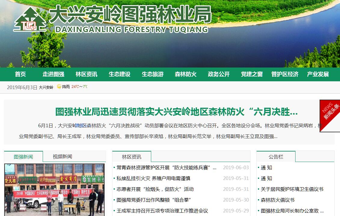 图强林业局座落在大兴安岭北麓漠河县境内,东临阿木尔林业局,南靠内蒙古满归林业局,西接西林吉林业局,北隔黑龙江与俄罗斯相望。地理座标为东径122°18′28″-123°28′10″,北纬52°15′35″-53°33′42″。境内主要山脉为东北、西南走向,地形狭长呈带状,南高北低。额木尔河两度横切中部和北部,经过局址、奋斗、育英、二十八站林场;加上较长的老潮河和丘古拉河(长均在50公里左右),构成了较丰富的水资源系统。施业区总面积50.55万公顷,林业经营面积50.46公顷,林业用地面积49.71万公顷,林木总蓄积2999.988立方米,森林覆盖率87.15%。树种组成以兴安落叶松为主,占总蓄积量的71%,白桦占21%,樟子松占7.5%,杨、柳等其它树种占0.5%。拥有植物资源264种,野生动物147种,已发现探明的矿产资源有砂金、煤炭、大理石等9种。境内主要河流有黑龙江和额木尔河。图强林业局地处寒温带大陆性季节气候区,在大兴安岭农林区划中属北部低山丘陵寒冷半湿润农林气候区。因此冬季严寒漫长,夏季炎热短促,年均降水量约400毫米,无霜期80至90天左右,年均气温-3.9℃。图强林业局始建于1977年3月。施业区总面积50.55万公顷,森林覆盖率92%。现有在册人口1.4万人,在岗职工4001人。全局下辖10个资源管护区及文教卫生、法检公等20余个基层单位。开发建设至2014年商品材停伐,林业局共为国家提供商品材1000余万立方米,上缴利税4亿多元,已跻身全国100家大型森工企业行列。1987年,图强林业局惨遭震惊中外的“五、六”大火洗劫,森林过火面积达80%以上。1998年以来,图强林业局抢抓“二期天保”工程、生态示范区建设等历史性机遇,不断深化企业改革,积极培育接续替代产业,企业步入了发展的快车道。近年来,林业局以“冰泉小镇、灵芝之乡”为发展定位,确立了“打造四大基地,建设五型图强”的奋斗目标,林下经济、生态旅游、森林碳汇已形成多元发展、多业并举、多轮驱动的产业发展格局。2012年,林业局被国家中促会农业推广中心授予“中国最北灵芝之乡”荣誉称号。企业先后荣获“全国五一劳动奖状”、“全国资源管理先进单位”、“全国精神文明建设工作先进单位”、“全国森林防火先进单位”等殊荣。2014年,图强林业局晋升为省级“生态林业局”。