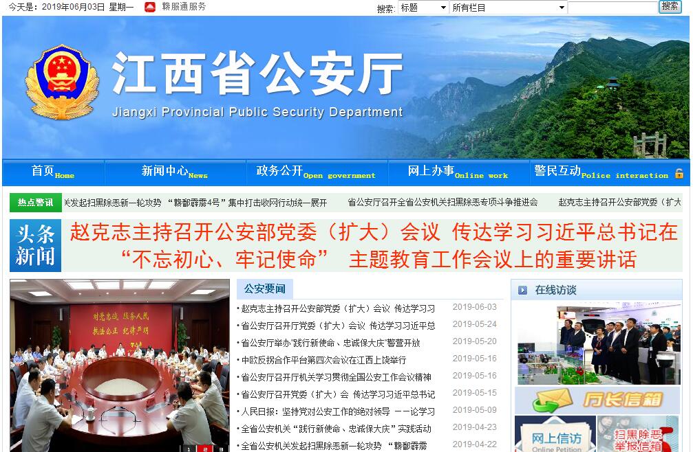 江西省公安厅为省人民政府主管全省公安工作的组成部门,是全省公安工作的领导机关和指挥机关。其主要职责是:(一)贯彻执行国家的法律、法规和公安工作的方针、政策;拟订全省公安工作的规定和实施办法;对全省公安机关实施组织领导和指挥;部署、指导、监督和检查全省公安工作。(二)掌握影响社会稳定、危害国内安全和社会治安的情况,分析形势,制定对策。(三)组织实施并指导全省公安机关侦查工作,组织、协调处置重大案件、治安事件、治安事故和重大群体性事件、骚乱。(四)组织实施并指导全省公安机关依法查处违反治安管理行为,依法开展治安行政管理工作;指导、监督全省公安机关治安保卫工作。(五)组织指导出入境和外国人在我省境内居留、旅行的有关管理工作,组织指导全省公安外事工作。(六)组织实施并指导、监督全省消防、警卫和边防检查工作;对武警部队执行公安任务及相关业务建设实施领导和指挥。(七)组织实施并指导全省公安机关维护道路交通安全、交通秩序以及机动车辆、驾驶人管理工作。(八)组织实施并指导、监督全省公共信息网络的安全保护工作,负责信息安全等级保护工作的监督、检查、指导。(九)指导、监督全省公安机关依法承担的执行刑罚工作,组织实施并指导、监督全省看守所、收容教育所、拘留所、强制隔离戒毒所、戒毒康复中心和安康医院等的管理工作,规划和指导全省监所建设。(十)组织实施并指导全省公安法制建设;指导、检查、监督全省公安机关执法活动。(十一)组织实施并指导全省公安机关开展禁毒和缉毒工作,承担省禁毒委员会办公室的日常工作。(十二)组织、指导、协调对全省恐怖活动的防范、侦察、处置工作,承办省反恐怖工作协调小组办公室和处置劫机事件应急指挥部办公室的日常工作。(十三)组织实施全省公安科学技术工作,规划公安指挥系统、信息技术和刑事技术。(十四)拟定并组织落实全省公安被装、装备、经费的配备标准和制度。(十五)指导全省公安政治工作和队伍建设;领导全省公安消防、警卫部队建设;组织实施并指导、管理全省公安宣传、教育、训练工作;按规定权限管理干部人事工作。(十六)制定全省公安队伍监督管理工作规章制度,分析队伍状况;组织实施并指导全省公安机关督察工作,按规定权限实施对干部的监督,查处或督办公安队伍重大和较大违纪案件;指导全省公安队伍思想作风、工作作风建设。(十七)承办省人民政府交办的其他事项。