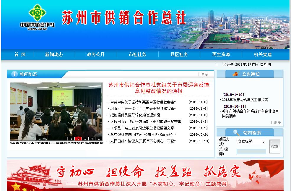 苏州市供销合作总社为全市供销合作社社员社的联合组织和市级社社有资产管理机构,系市政府直属正处级事业单位,参照公务员管理。下辖张家港、常熟、太仓、昆山4个市(县)级供销合作总社和吴江、吴中2个区级供销合作总社。近年来,全系统认真贯彻落实党的十九大精神,以习近平新时代中国特色社会主义思想为指引,坚持稳中求进工作总基调,坚持新发展理念,紧紧围绕苏州勇当“两个标杆”、争做“强富美高”新江苏建设先行军排头兵的目标,按照全市城乡融合发展总体布局,以农业供给侧结构性改革为主线,坚持为农服务宗旨,全面推进供销合作社综合改革,农村社会化服务不断拓展,农村现代流通服务体系持续完善,合作经济体系巩固发展,再生资源回收利用体系建设进展显著,为再创供销合作事业新辉煌奠定了坚实的基础。市委、市政府领导高度重视供销社工作,主要领导多次对供销社作出重要批示,全国总社、省社领导多次来苏视察指导。全系统已连续多年被省供销合作总社评为“综合业绩考评特等奖”。2012年、2017年,苏州市供销合作总社被人力资源和社会保障部、中华全国供销总社命名为“全国供销合作社系统先进集体”。2018年上半年,实现销售总额304.63亿元,同比增长18.82%;实现消费品零售额115.66亿元,同比增长4.33%。全市供销社已培育昆山商厦等超亿元骨干企业34家;已建设新合作常客隆、昆山捷强等各类连锁企业26家,连锁经营网点2518家,年销售突破83.14亿元,日用品、农资、农副产品、再生资源等“四大网络”巩固完善;已建成张家港市青草巷农副产品批发市场等各类批发市场7家,2018年上半年实现农副产品市场交易额80.17亿元;共建成农资连锁网点600家,2018年上半年实现农药配送0.49亿元,累计共配送9.41亿元,农药集中配送体系已在全市实现全覆盖,并逐步将配送延伸服务由粮食、果蔬向绿化、爱卫消杀、兽(渔)药等方面拓展;全系统已全面开展测土配方肥工作,2018年上半年共配送测土配方肥2.15万吨,累计已经完成8.38万吨,惠及农民20余万人;2018年上半年共回收农药废弃包装物940多万件,累计已回收2905万件;积极推进网上交易、仓储物流、终端配送一体化经营,2018年上半年实现电子商务销售0.53亿元;昆山农信担保公司累计完成小额贷款24.4亿元,服务农户21309户;完善了三级再生资源回收利用网络体系,累计建设废旧商品社区服务点109个,建成运行密闭化再生资源中心分拣站3个;已建的废旧轮胎综合再生处理项目,累计加工废旧轮胎3万吨;积极构建“互联网+”家电收运体系,打造起年拆解4.2万吨电子废弃物项目,上马了废旧手机和废旧小家电拆解线;年处理3万吨的PET饮料瓶破碎清洗项目已投入运营;累计改造提升规范基层供销社49个,太仓、吴江所属各乡镇基层社已经全部建立了规范的“三会”制度,实现了乡镇基层社“三会”制度全覆盖;已建综合服务社937家,综合服务中心88家,基本覆盖全市涉农行政村,形成了苏州多元化、连锁化、综合化、标准化、规范化、品牌化推进为农服务社建设的特色;累计已建办专业合作社352家,专业合作社联合社24家;2018年上半年完成一二三产业融合发展综合体2家,累计建成10家,累计建设现代农业综合服务中心3家;苏州市农村合作经济联合会现有会员单位102家,积极发挥党和政府在农村工作的参谋助手作用;各级供销社积极开展“不忘初心、牢记使命”主题教育,扎实推进“六个一”走访调研,坚持全面从严治党,推进“两学一做”常态化、制度化,组织开展了“解放思想大讨论”系列活动,切实转变工作作风,密切干群关系,努力推动供销合作社在新的历史起点上实现新跨越。