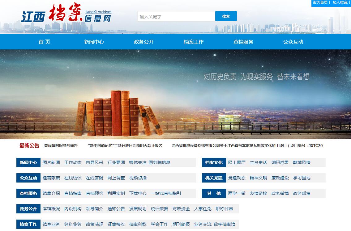 根据《省委办公厅、省政府办公厅关于印发<江西省档案馆职能配置、内设机构和人员编制规定>的通知》(赣厅字[2018]133号),省档案馆是省委省政府直属事业单位,为正厅级。其主要职责是:1.贯彻执行党和国家、我省有关档案管理的法律法规规章及有关规定,制定和实施本馆档案管理制度、业务标准和技术规范,集中统一管理省级机关、团体、企事业单位和其他组织的重要档案资料,保守党和国家秘密,维护档案完整与安全。2.依法接收属于省档案馆接收的省级机关、团体、企事业单位和其他组织的档案并予以指导;负责调查、征集散存、散失在社会上反映我省各个历史时期、具有重要保存价值和历史研究价值的档案资料,以及著名人物在江西活动中形成的各种载体、门类的档案资料;开展主动建档存史工作。3.安全、科学保管省级机关、团体、企事业单位和其他组织按规定移交进馆的档案资料;开展馆藏档案资料的整理、鉴定、保护、修复、复制和统计等各项基础工作。4.开展档案资料利用服务工作,提供档案资料查阅利用,依法公布档案,研究、编纂、出版档案史料,为党委和政府决策提供参考,为社会提供服务;负责省直单位已公开现行文件的收集、整理和提供利用工作。5.开展档案宣传和档案文化建设,举办档案陈列展览,满足社会档案文化需求。6.开展本馆档案信息化建设,负责省级重要政务数据、电子档案管理和长久保存,采用先进技术管理档案和资料,保证数字档案资源的安全管理和有效利用;推进档案信息网络建设,充分发挥档案信息资源作用,为经济建设和社会事业发展提供服务。7.开展档案理论和科学技术研究,加强馆际合作和业务交流,推进档案馆工作的科学化、标准化与现代化建设;承担全省档案资料目录中心(平台)建设,推进区域档案信息资源共享。8.负责档案专业技术和本馆专业人才队伍建设工作。9.完成省委、省政府交办的其他任务。