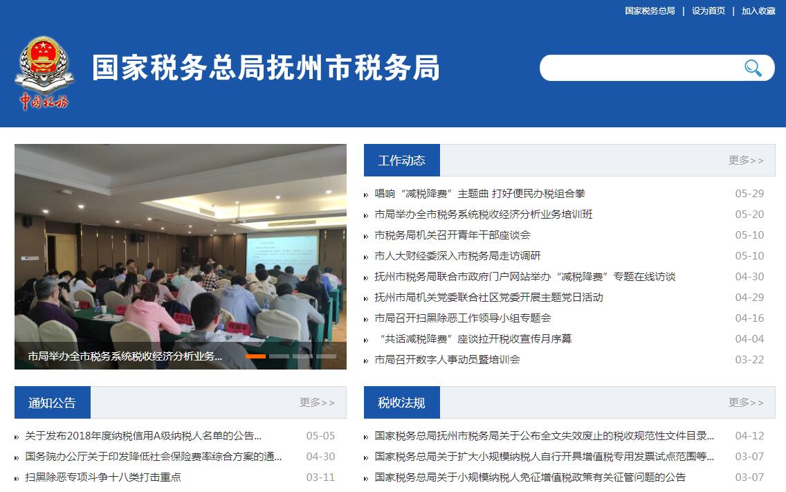 国家税务总局抚州市税务局的主要职责是:(一)负责贯彻执行党的路线、方针、政策,加强党的全面领导,履行全面从严治党责任,负责党的建设和思想政治建设工作。(二)负责贯彻执行税收、社会保险费和有关非税收入法律、法规、规章和规范性文件,研究制定具体实施办法。组织落实国家规定的税收优惠政策。(三)负责研究拟定本系统税收、社会保险费和有关非税收入中长期规划,参与拟订税收、社会保险费和有关非税收入预算目标并依法组织实施。负责本系统税收、社会保险费和有关非税收入的会统核算工作。组织开展收入分析预测。(四)负责开展税收经济分析和税收政策效应分析,为国家税务总局江西省税务局和市委、市政府提供决策参考。(五)负责所辖区域内各项税收、社会保险费和有关非税收入征收管理。组织实施税(费)源监控和风险管理,加强大企业和自然人税收管理。(六)负责组织实施本系统税收、社会保险费和有关非税收入服务体系建设。组织开展纳税服务、税收宣传工作,保护纳税人、缴费人合法权益。承担涉及税收、社会保险费和有关非税收入的行政处罚听证、行政复议和行政诉讼事项。(七)负责所辖区域内国际税收和进出口税收管理工作,组织反避税调查和出口退税事项办理。(八)负责组织实施所辖区域内税务稽查和社会保险费、有关非税收入检查工作。(九)负责增值税专用发票、普通发票和其他各类发票管理。负责税收、社会保险费和有关非税收入票证管理。(十)负责组织实施本系统各项税收、社会保险费和有关非税收入征管信息化建设和数据治理工作。(十一)负责本系统内部控制机制建设工作,开展对本系统贯彻执行党中央、国务院重大决策及上级工作部署情况的督查督办,组织实施税收执法督察。(十二)负责本系统基层建设和干部队伍建设工作,加强领导班子和后备干部队伍建设,承担税务人才培养和干部教育培训工作。负责本系统绩效管理和干部考核工作。(十三)负责本系统机构、编制、经费和资产管理工作。(十四)完成国家税务总局江西省税务局和市委、市政府交办的其他工作。