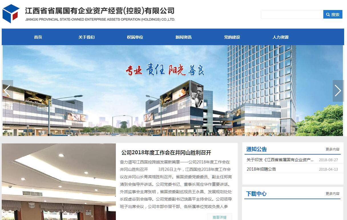 江西省省属国有企业资产经营(控股)有限公司(简称“江西国控公司”)成立于2009年1月,注册资本60亿元人民币,是经江西省人民政府批准设立、省国资委履行出资人职责并授权经营的国有资本投资运营平台。公司经营范围为:国有资产及国有股权的管理和运营;资本运营;企业改制重组顾问、投资咨询和财务顾问;资产托管和代理;省国资委授权的其他业务。在省委、省政府的坚强领导下,江西国控公司紧扣打造一流省级国有资本投资运营公司“一个总目标”,坚持稳中求进“一个总基调”,做大做优国有资本运营、产业投融资、深化改革服务“三个平台”,着力强化产业培育、资本运营、投融资管理、科学决策和风险管控“五大能力”,不断推动省属国有经济转型升级、创新发展、做强做优做大“三个新转变”,在建设具有竞争力和影响力的一流省级国有资本投资运营公司的道路上不断向前迈进。公司是实行规范化运营的国有独资公司,拥有完善的法人治理结构,设有党委会、董事会、监事会,本部设立15 个职能部室,已形成了较为成熟的操作理念和运作模式,打造了一支具有较强专业能力和丰富实践经验的团队,培育了以“专业、责任、阳光、善良”为特色的企业文化。截止2018年底,公司资产总额已达1333.91亿元,评级已达AAA。在短短十年不到的时间内资产规模增长100多倍,由成立之初资产规摸仅10亿元的小公司,升级为如今资产规模超干亿元的大平台。江西国控公司己经名副其实地成为省国资委系统规模最大、功能最全的综合性国有资本投资运营平台和国企改革发展的服务平台。